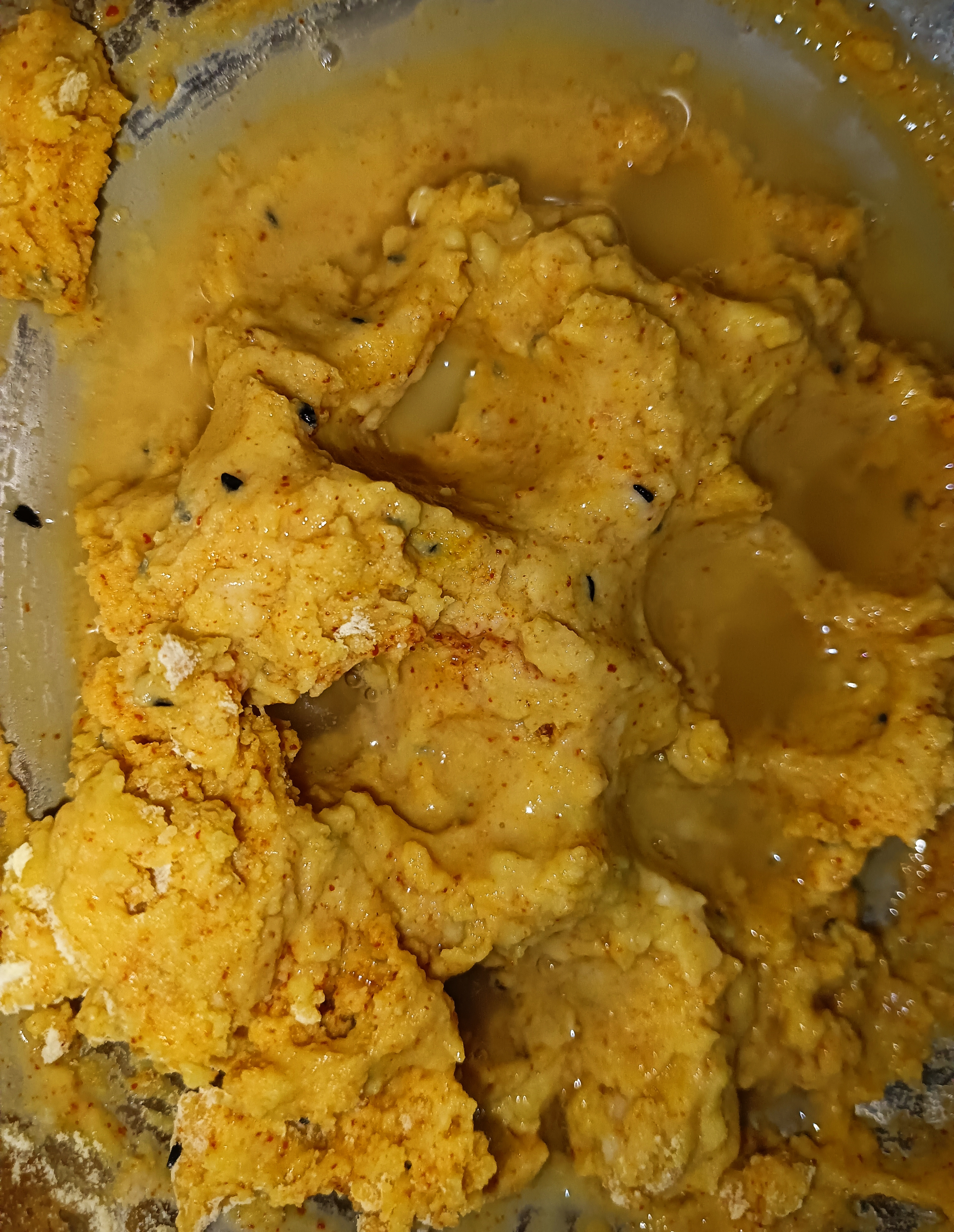 এই যে পুরোপুরি বেসন গোলার পর এরকম ঘন থাকবে।