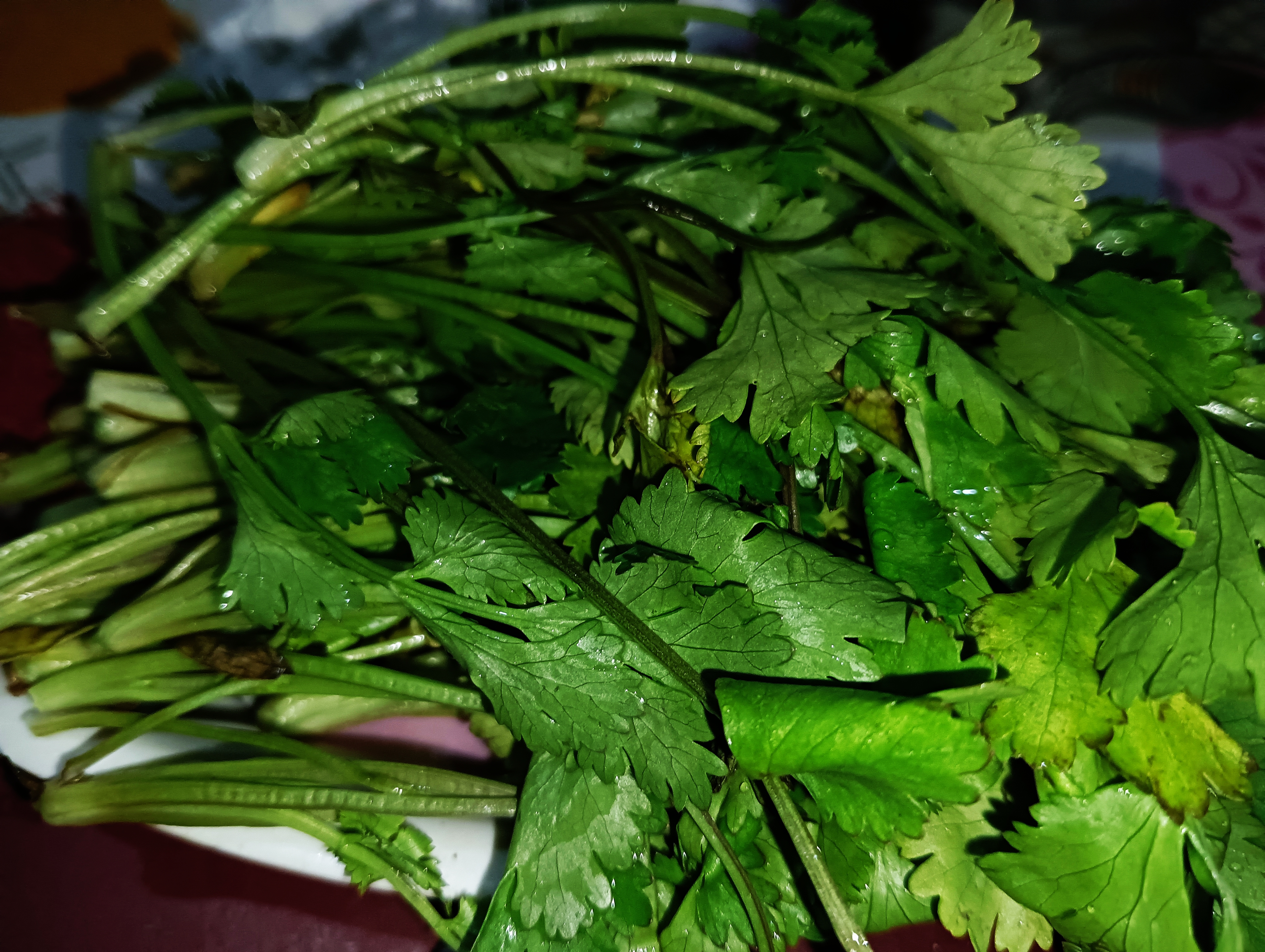 এবার ধনে পাতা গুলো ধুয়ে নিলাম আর নীচ থেকে অল্প অল্প কেটে নিলাম।