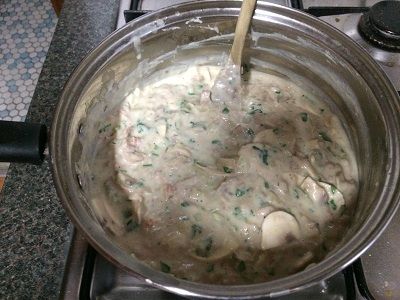 - As you can see some images, I added some Mushrooms to the mixture when the Cream and other things goes in. 3 Mushrooms, finely sliced. This was an excellent addition