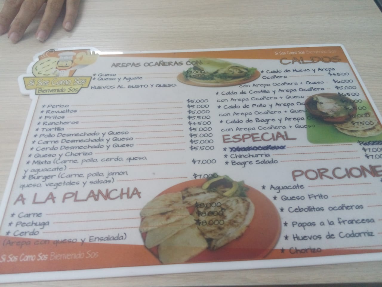 Durante mi estadía en Colombia, entrando en un restaurant de comida ocañera, descubrí la Arepa Burger, una combinación de la tradicional Arepa de harina de maíz pre-cocida y la hamburguesa anglosajona. En este caso la Arepa viene rellena de carne de res (preparada tipo hamburguesa), pechuga de pollo, jamón de cerdo, queso, lechuga, cebolla, salsa de tomate kétchup y mayonesa. Una verdadera delicia de la cocina sudamericana. Todo por la módica suma de 7.000 pesos colombianos. Y para acompañar nuestra Arepa Burger: una bebida gaseosa sabor a manzana.
