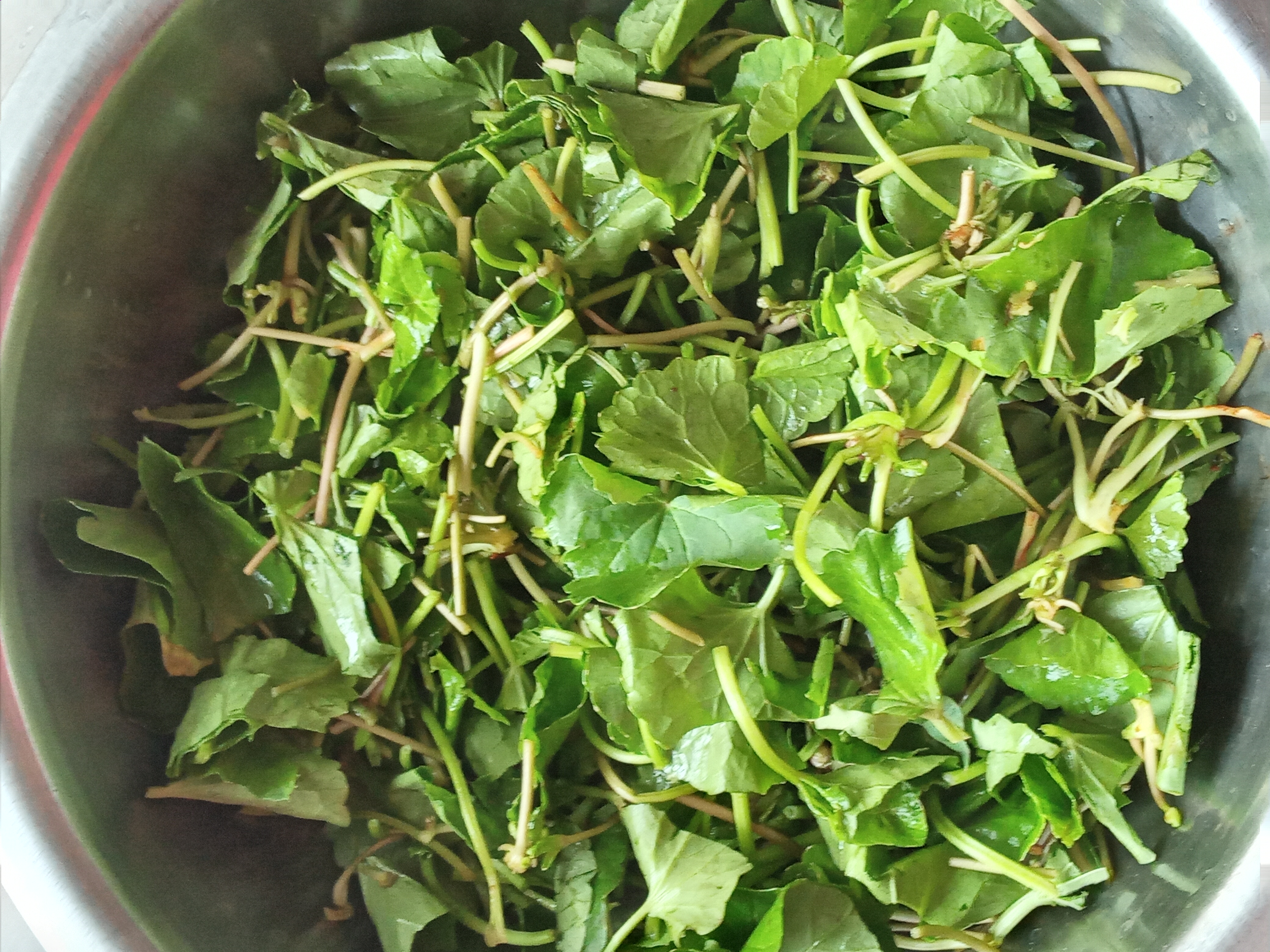 - এরপর পানিটা বলক আসলে এর মধ্যে কেটে রাখা থানকুনি পাতাগুলো দিয়ে নেড়ে চেড়ে ঢাকনা দিয়ে কিছুক্ষণ কষিয়ে নিলাম।