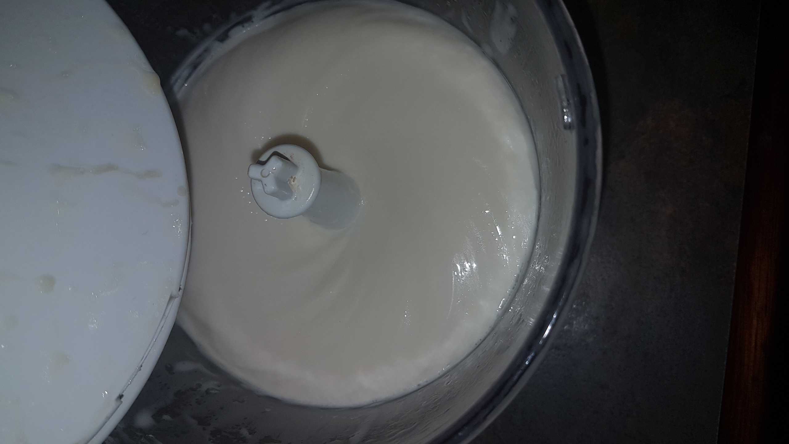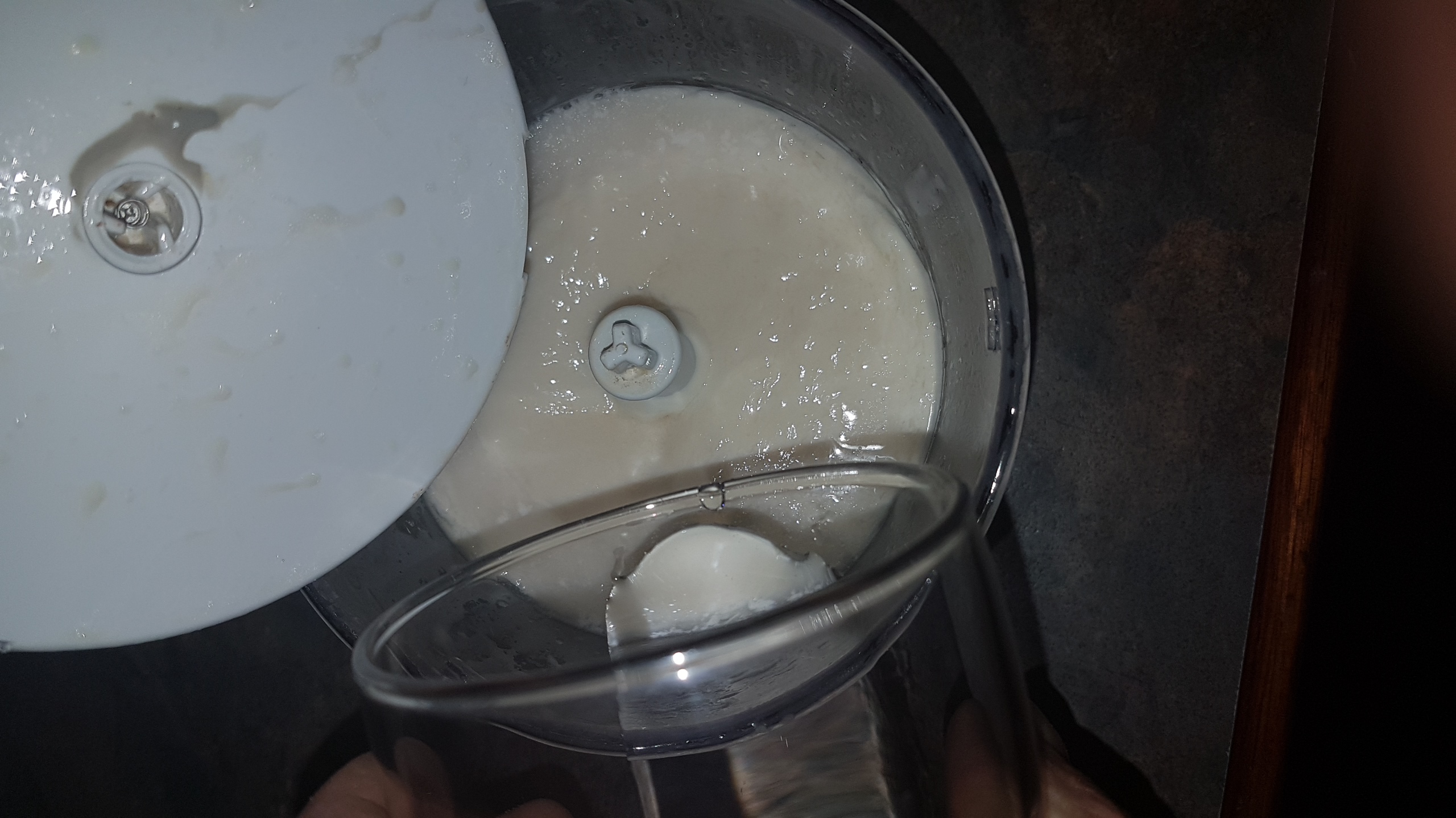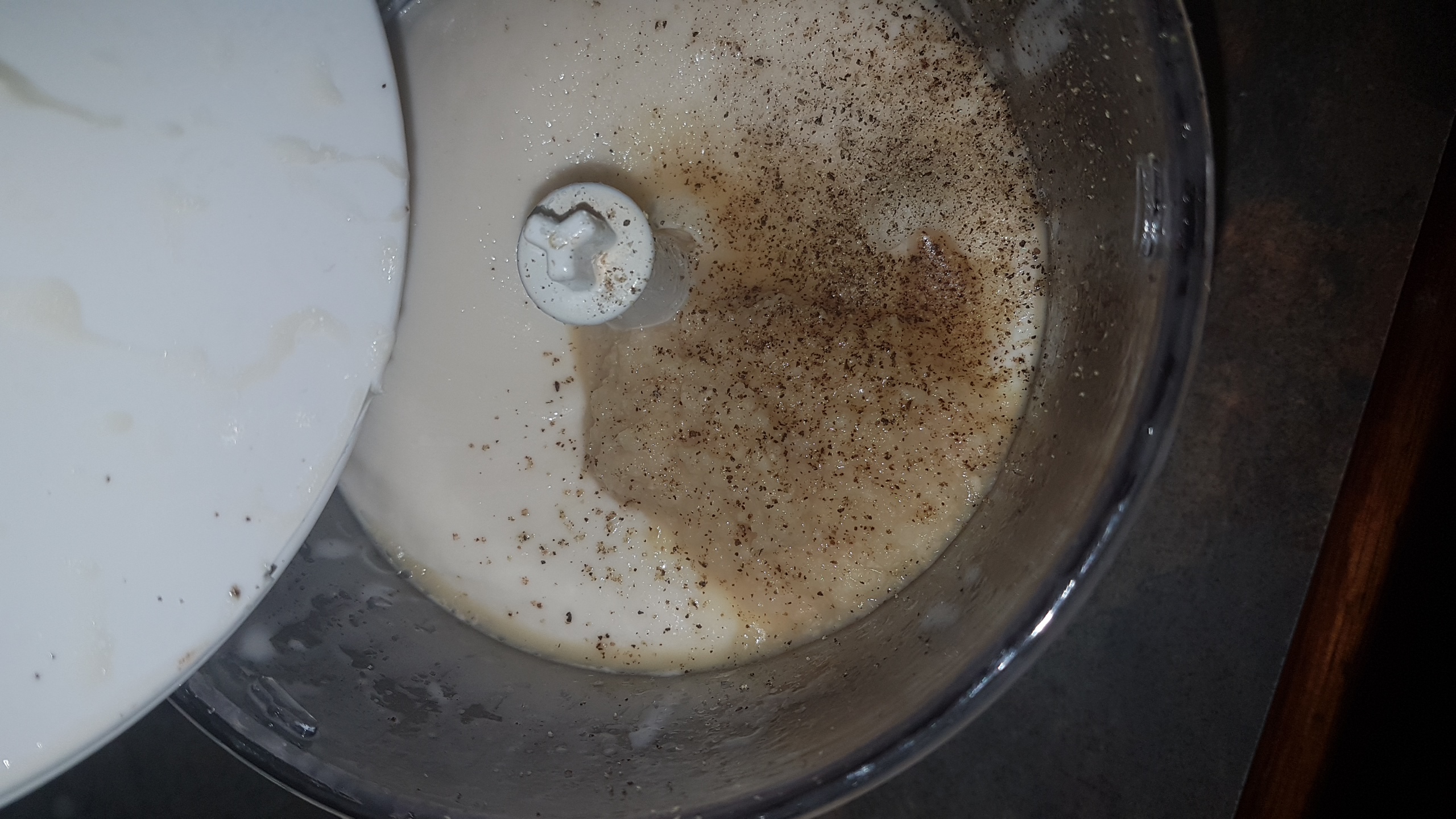 Some processors let you add as its running, but most oils dont fit through holes and it just gets messy :-) So take your time and add your oil slowly. If the mix seems to go weirld lumpy and seperate, add a tablespoon of luke warm water and this will bring it back to a colloide(smooth mix). I usually get about 375ml of oil in before im happy with the texture and richness, but you can keep adding oil for a lighter mayonaise.