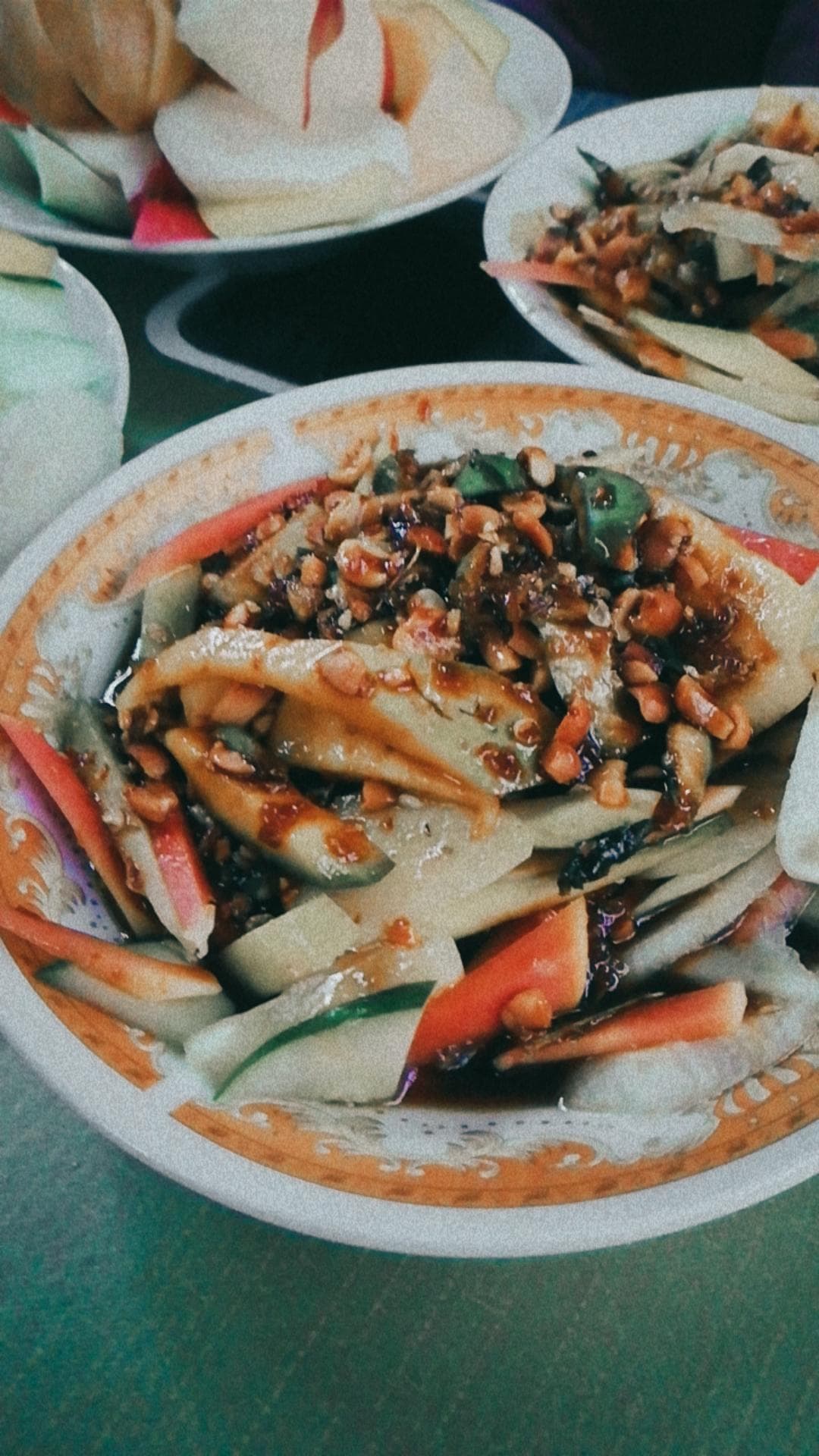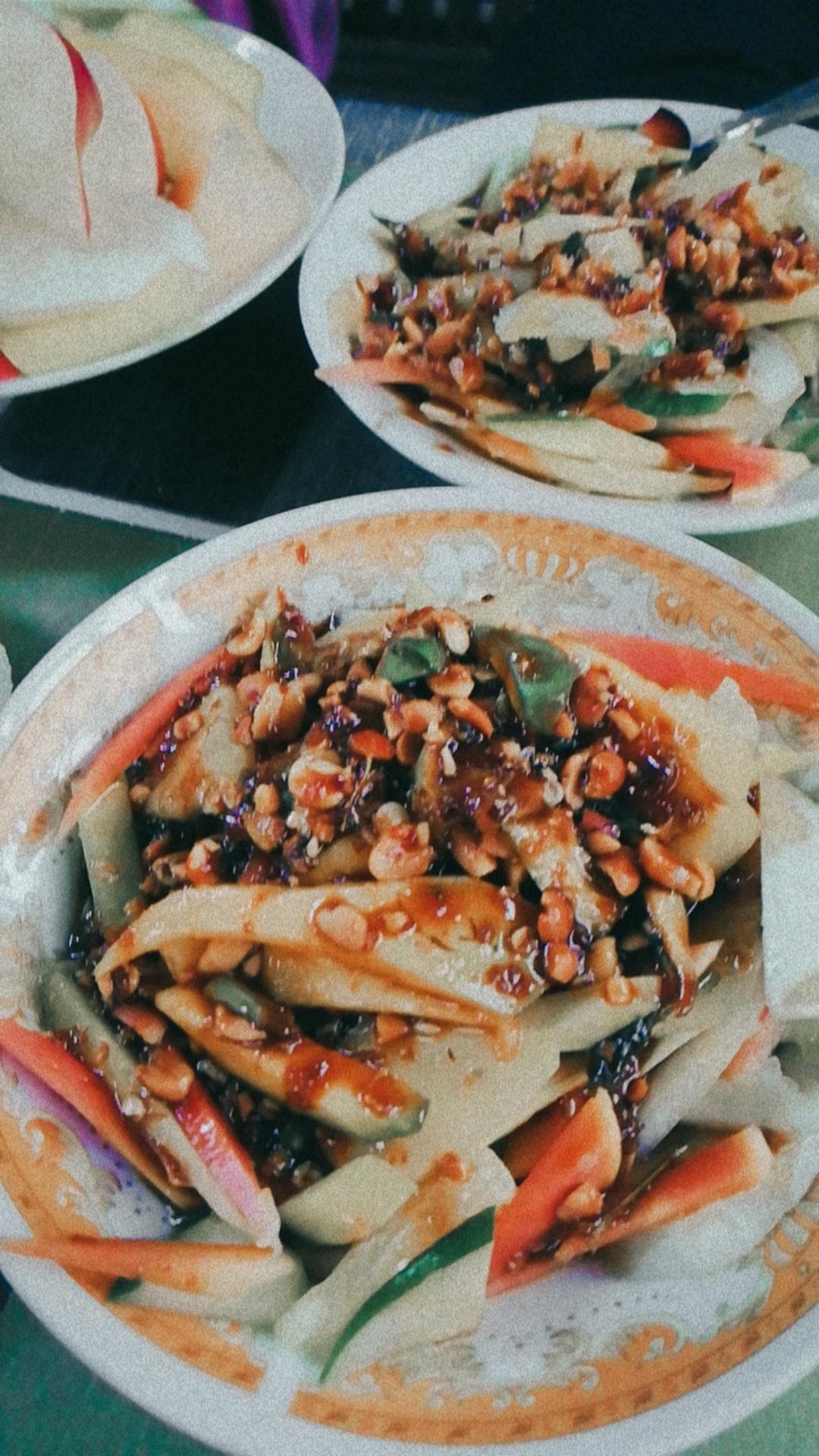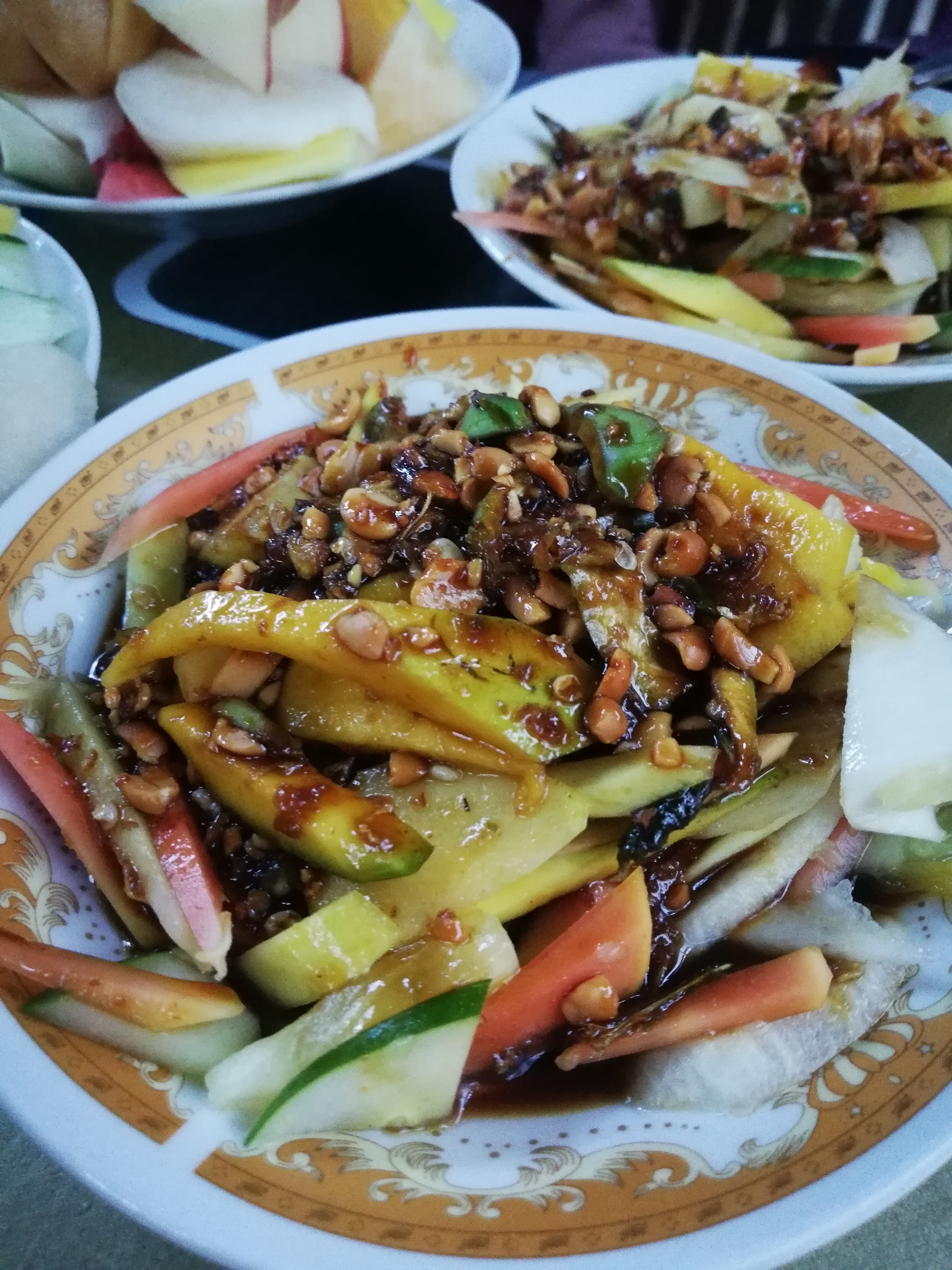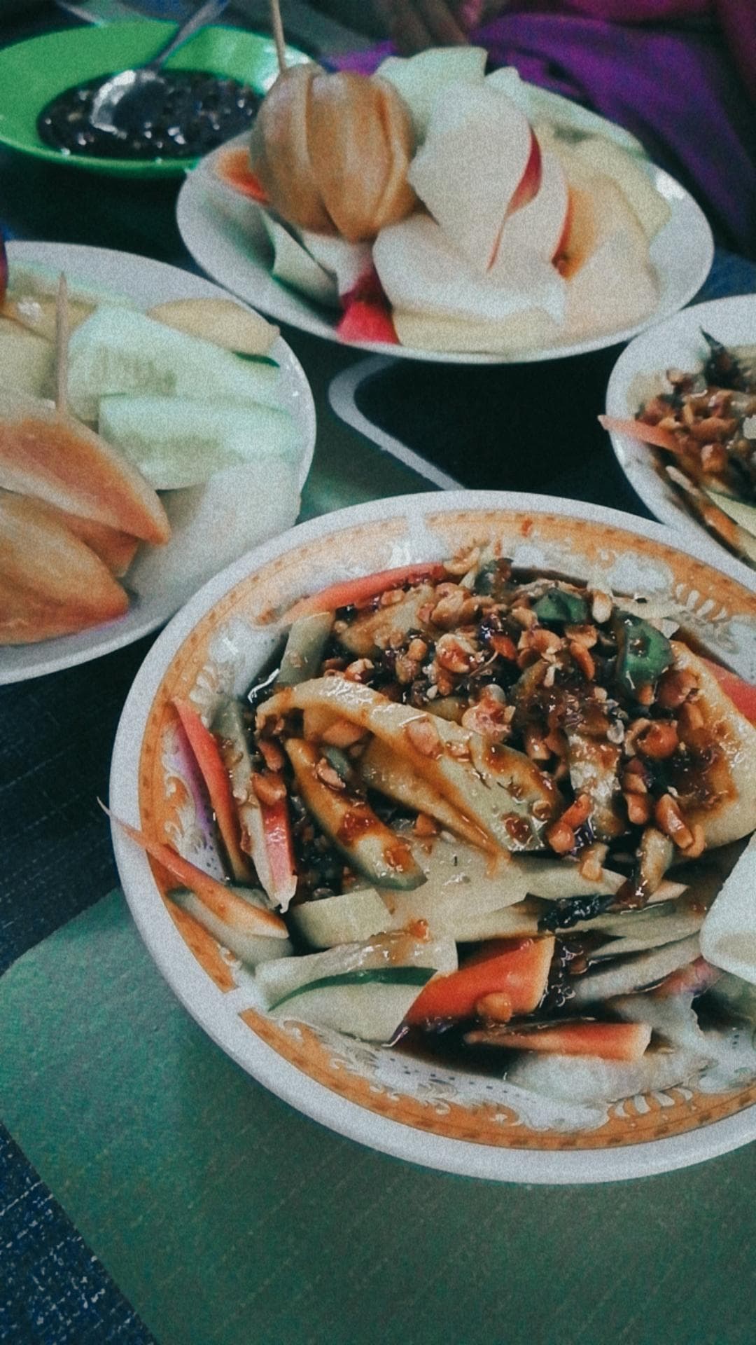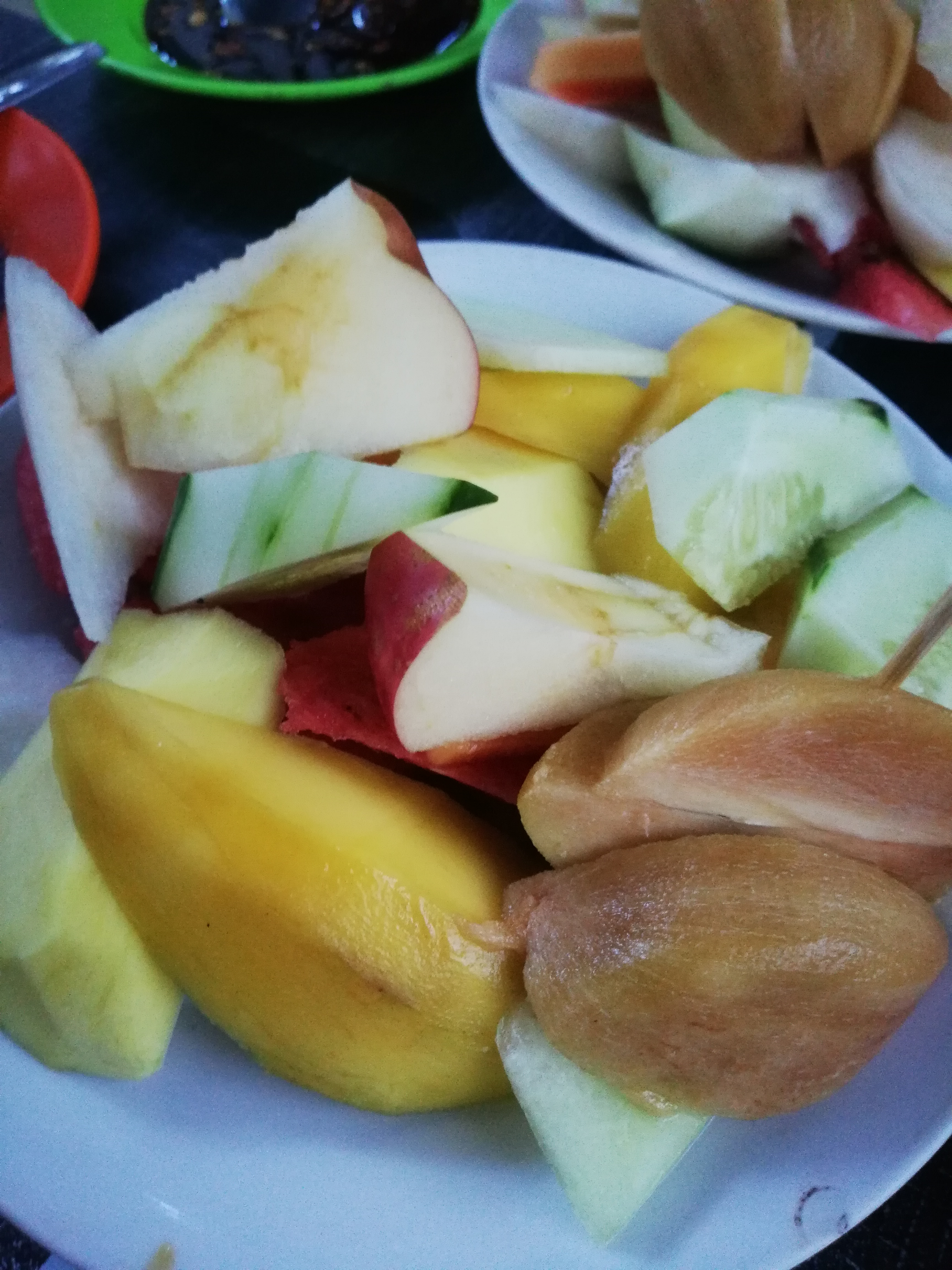Selamat malam sahabat steemit, semoga kalian selalu dalam keadaan sehat, seperti biasa saya akan membagikan beberapa foto yaitu rujak, rujak sangat disukai dan menjadi makanan favorite bagi remaja maupun orang tua karena dengan campuran buah-buahan yang segar dan bumbu rujak yang pedas dan sangat menggugah selera, buah-buahan yang digunakan untuk membuat rujak biasanya mangga, jambu, apel, sawo, langkuang, semangka, mentimun,Quini, nanas dan lain-lain dan buah-buahan tersebut di santap pakai bumbu yang sudah jadi dan biasa bumbu rujak tersebut dibuat dari kecap manis,kacang,cabai dll.