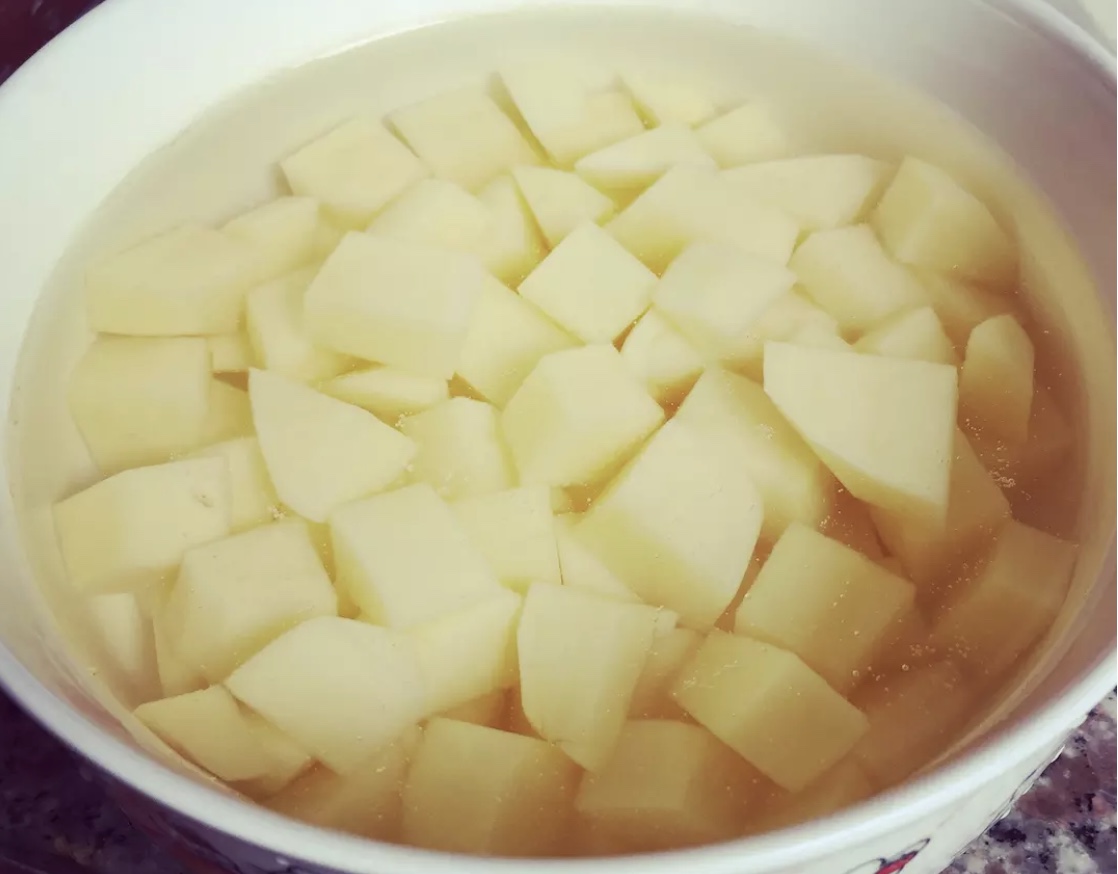 step 2 potatoes, peel and cut, and soak for 10 minutes.