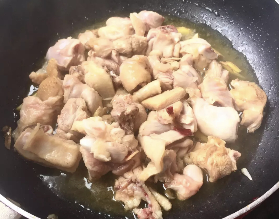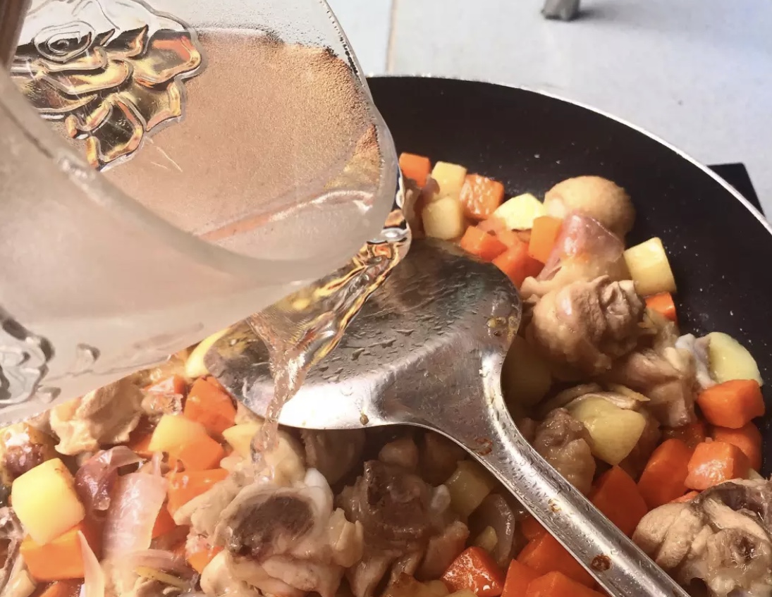 Step 8 K first stir fry onion and carrot potatoes and stir fry chicken. Add 400ml (about one cup) of hot water.