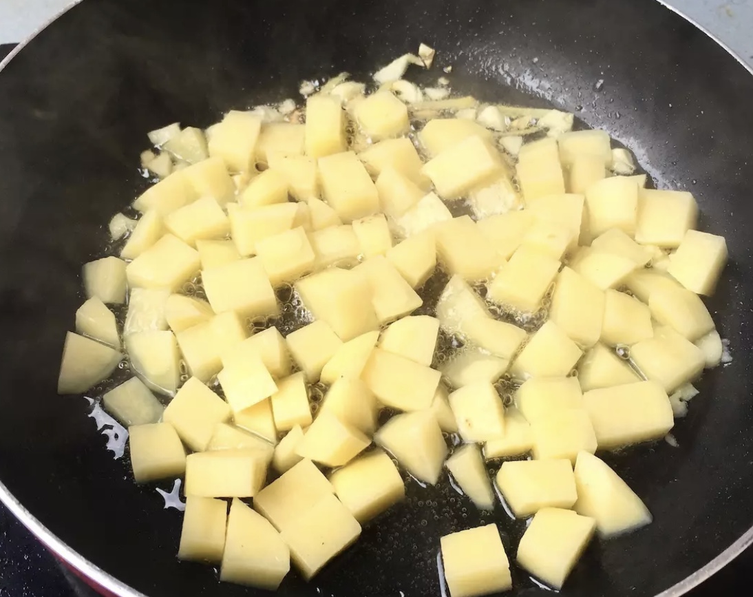 Step 4 first stir fry potatoes separately, so the potatoes are soft and tasty.