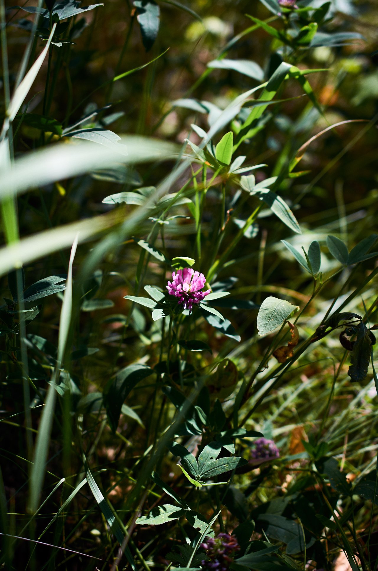 Clover flowers bloom beautifully in the grass. Lush pine trees stand proudly in the forest. This whole forest is wonderful and sweet.p