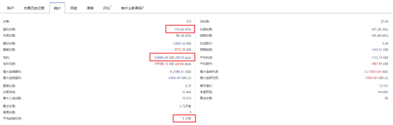 还要巧看交易统计,主要是看每个单子的平均盈利点数,平均盈利点数=毛利(pips)/交易笔数,这里pips是mt4最小报价单位,除10就是通常所说的标准点。为啥非要看这个呢,因为有的交易账户是EA自动交易系统,采用短线剥头皮盈利策略,每个单子获利3-5个点就平仓。对于信号提供者而言,获利3-5个点平仓是一件很容易的事,但是对于复制跟单的人来说,存在服务器跟单延迟、滑点等不可控因素,有可能单子跟出来不盈利,甚至亏损情况。所以交易信号每个单子的平均盈利点数越多,复制跟单的效率越高。