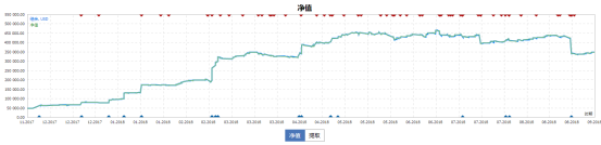 若净值曲线低于结余曲线,且经常出现偏离较大的情况,如图所示。说明交易账户持仓处于较大浮亏状态,这说明交易者有坑单的情况,通常这不是一个好的习惯。有的时候行情反转,单子坑回来了,但有的时候可能就面临着更大亏损,甚至爆仓风险。