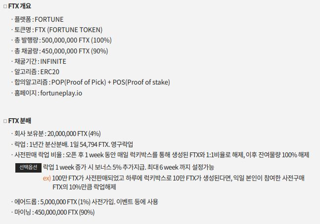 오픈후 1주일동안 사전판매 물량은 매일 럭키박스를 통해 생성된 FTX와 1:1 비율로 락업해제,