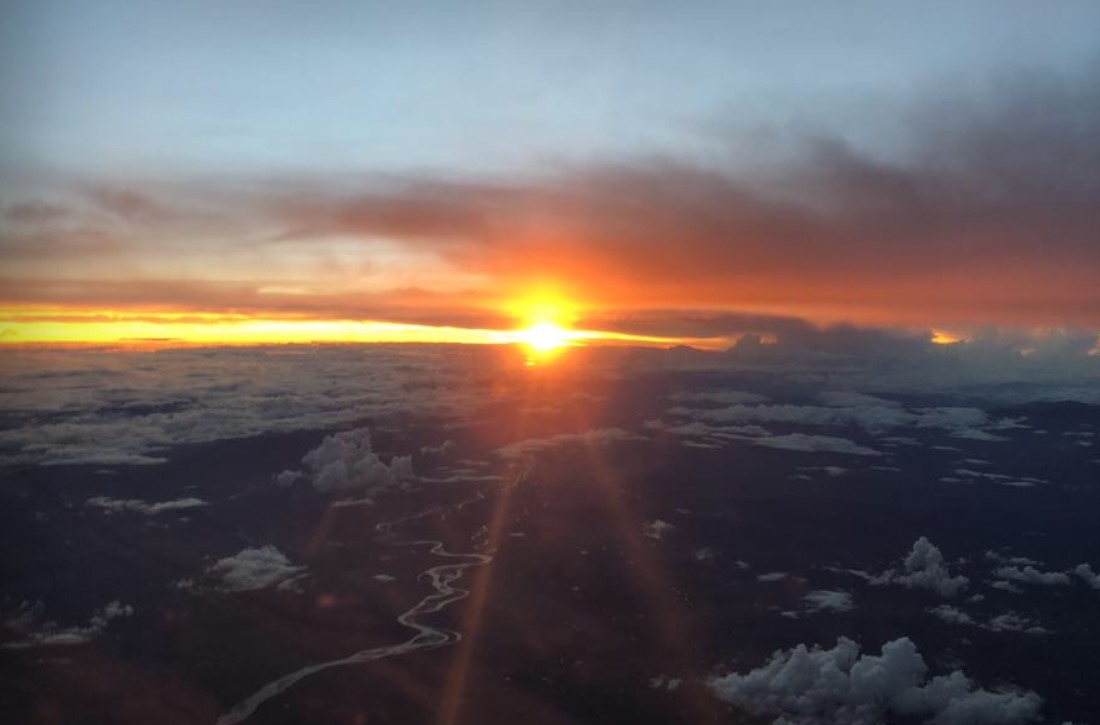 Hermosa vista! Qué oportunidad poder viajar junto a la ventanilla, al atardecer y poder ver esta puesta de sol!