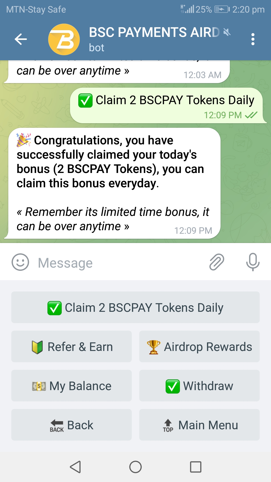 Join BSCPayments airdrop on telegram