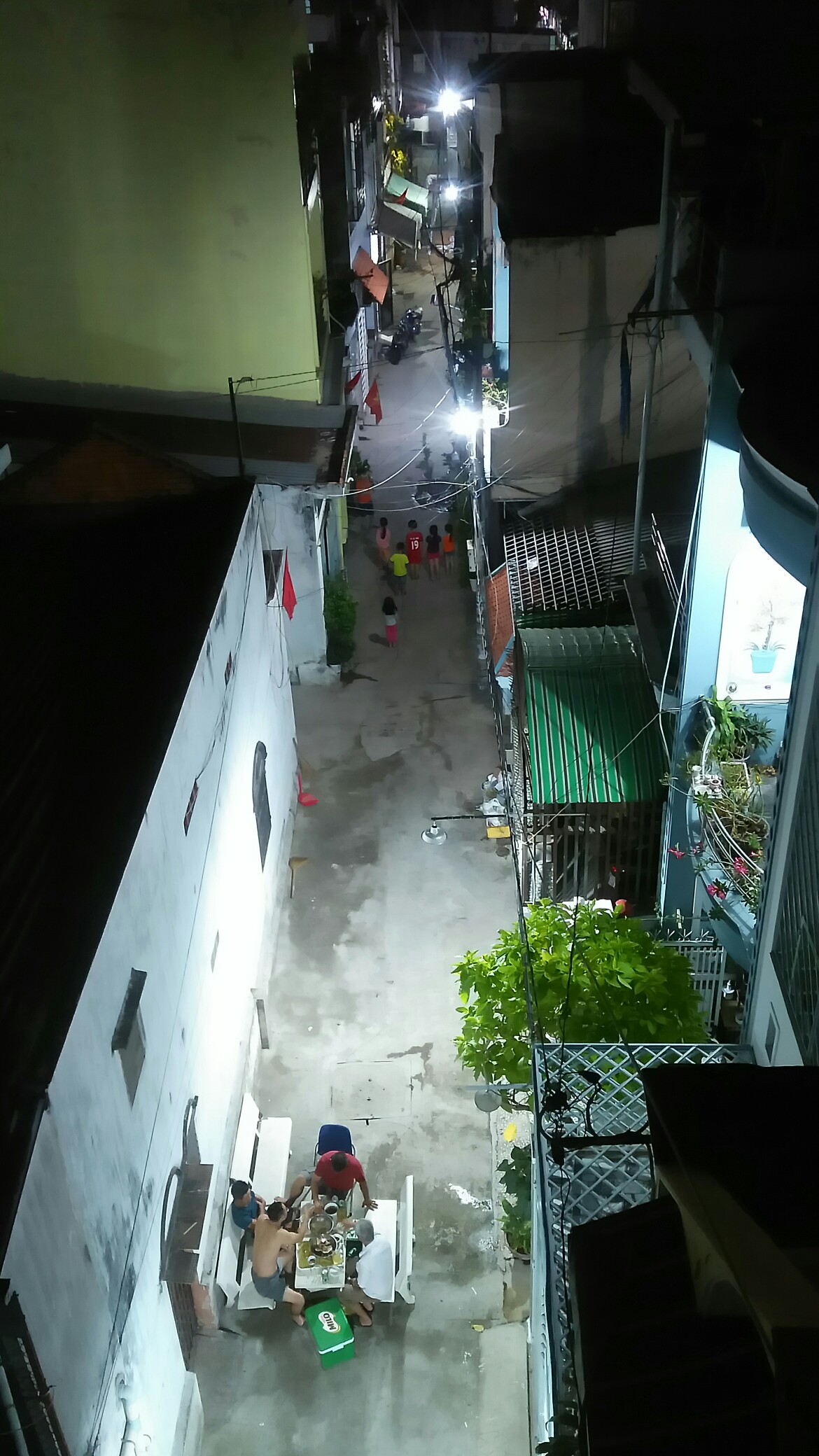 어느 늦은저녁 좁고 긴 골목에 동네아이들은 뛰놀고 어른들은 술을 마신다.