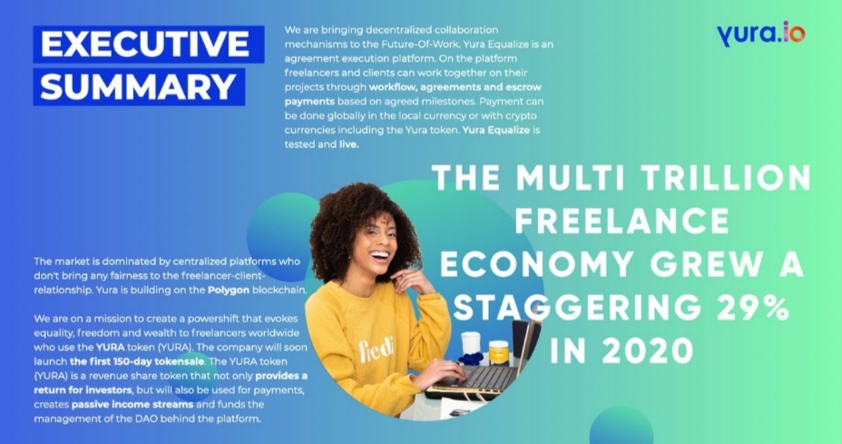Yura observed from history the increase in freelance sector in the year 2020 to 29%. Hence, it's mission is to enlighten the set of freelance workforce rising to attain affluence and independence thus, experiencing what it means to be free from the word freelance.