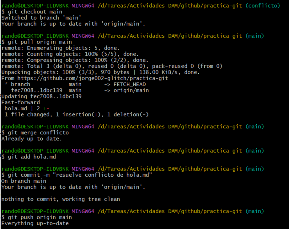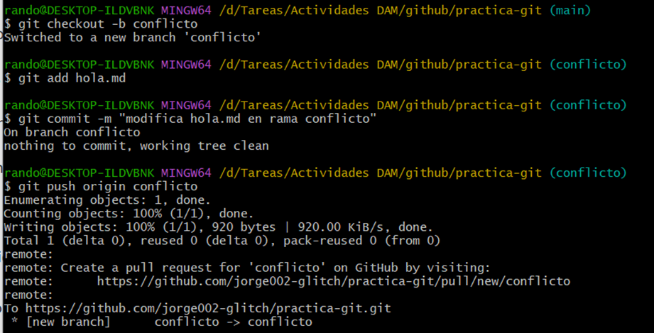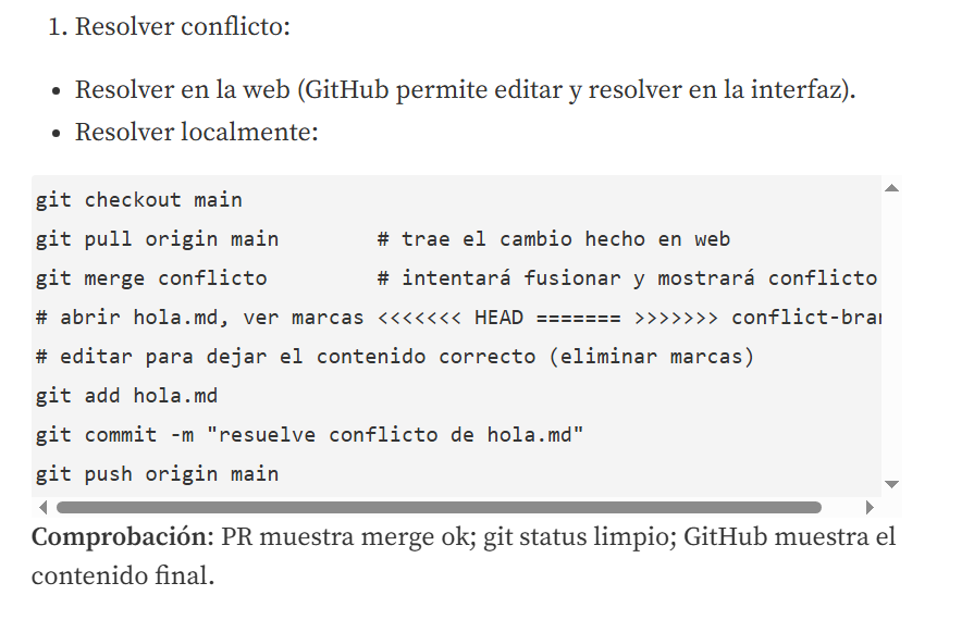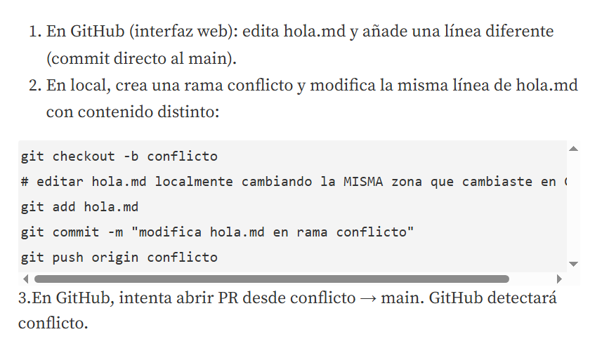 Para la quinta parte debemos simular una colaboracion y resolver un conflicto simple por lo que utilizaremos los archivos antes creados y seguimos las siguientes instrucciones: