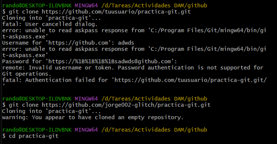 En la segunda actividad debemos clonar el repositorio con los comandos que nos proporcionan.