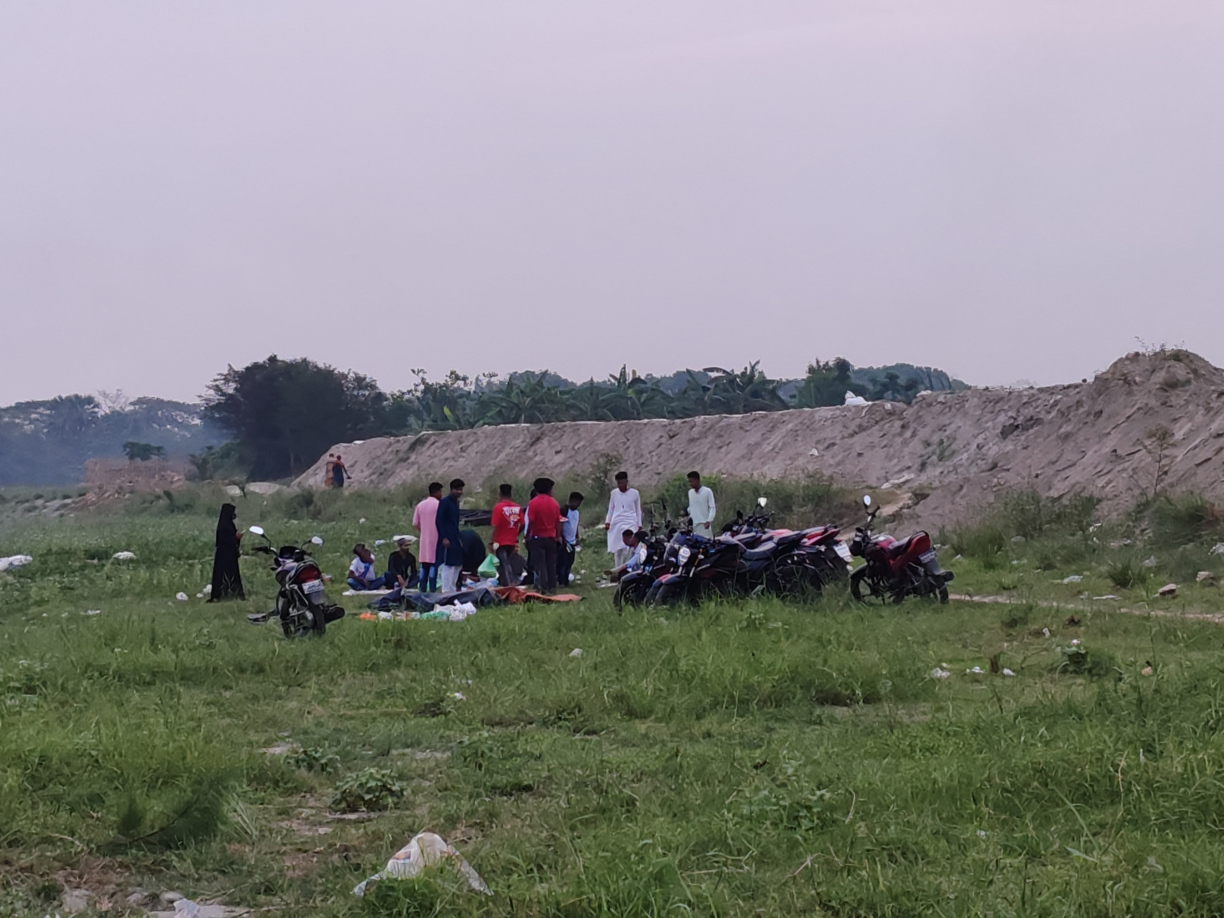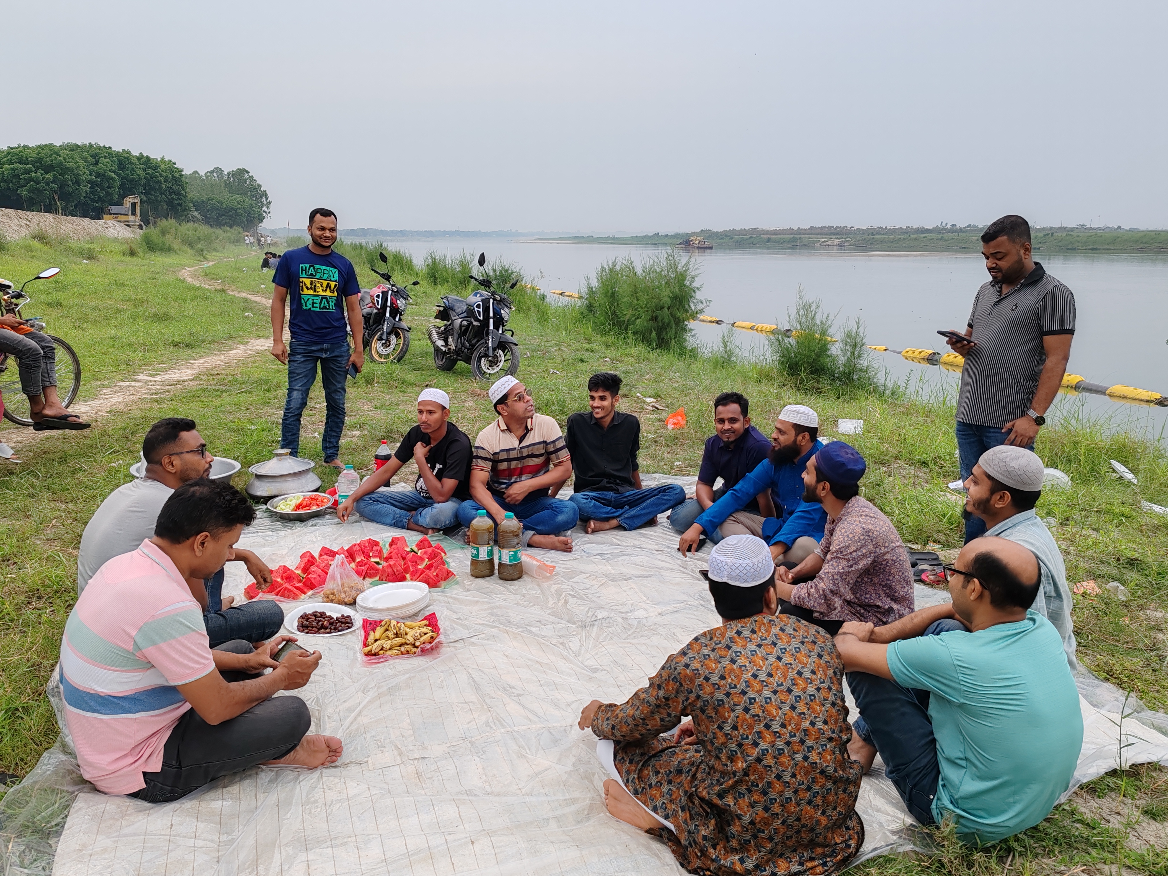 এই কথা বলার কিছুক্ষণ পরে দেখলাম ও মোটরসাইকেল নিয়ে আসছে। তারপর সবাই মিলে গিয়ে ওর শোরুমে বসলাম। পরবর্তীতে ওর কাছে ইফতারের আয়োজন এর আপডেট জানতে চাইলে ও বললো সব কিছু সময় মতো হবে। চিন্তা করার কোনো দরকার নেই। আমরা প্রতিবার ইফতার করি হাজীগঞ্জ নদীর ঘাটে ট্রলারের ছাদে বসে। এবারও আমি মনে করেছিলাম সেটাই হবে। কিন্তু রাফসান জানালো ভেন্যু পরিবর্তন হয়েছে। যেহেতু লোকজন এবার কিছুটা বেশি আর এবার সাথে রান্না করা খাবার নিয়ে যাবে। তাই অতোদূর না গিয়ে ওদের এলাকার নদীর পাড়ে বসে আমরা ইফতার করবো। আমার প্রথমে আইডিয়াটা খুব একটা পছন্দ হয়নি। পরে বাকিদের আগ্রহ দেখে রাজি হয়ে গেলাম। তারপর সবাই রাফসসনের শোরুমে আসলে আমরা রওনা দিলাম নদীর পাড়ের উদ্দেশ্যে। আমরা চার-পাঁচটা মোটরসাইকেলে করে যাচ্ছিলাম। আর সাথে ছিলো একটা ভ্যান। কারণ সেই ভ্যানে করে রান্না করা খিচুড়ি নিয়ে যাওয়া হচ্ছিলো। আমরা এর আগে যেখানে তাবু দিয়ে ক্যাম্পিং করেছিলাম সেখানেই গিয়ে ইফতারের জন্য বসে ছিলাম। দেখলাম সবাই মিলে সেই জায়গাটাই পছন্দ করেছে। যদিও সেই জায়গাটার চেহারায় কিছুটা পরিবর্তন এসেছিলো। কারণ নদীর থেকে বালু উত্তোলন করে সেটা রাখা হয়েছিল সেই জায়গাটার পাশেই। যার ফলে সেখানকার সৌন্দর্য কিছুটা নষ্ট হয়েছিলো।
