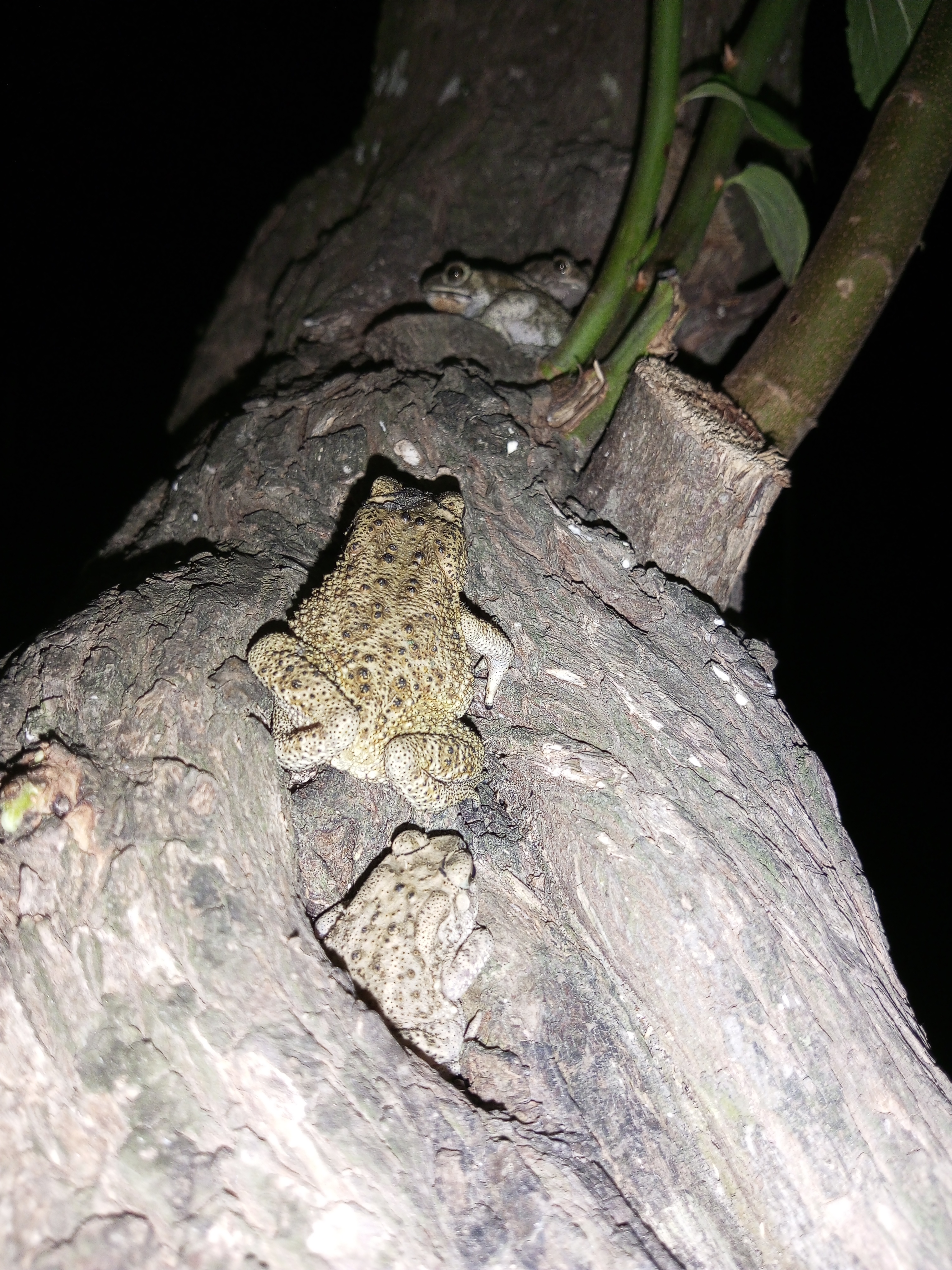 আমি তাদেরকে চরাই করতে দেখেছি সন্ধ্যা রাত্রের সময় যখন বাইরের আলোটা জ্বালানো হয়। ব্যাঙগুলো নিচে এসে পোকামাকড় খেয়ে থাকে। তারা সবাই গাছ থেকে নেমে চলে আসে বাল্ব এর নিচের আলোর পাশে, যেখানে বোনের পোকামাকড় গুলো এসে জড়ো হয়, তা খেয়ে তারা পেট ভরিয়ে থাকে।