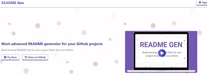 Its an advanced “README” generator for your Github projects. Build amazing “README” files for your project faster than ever before.