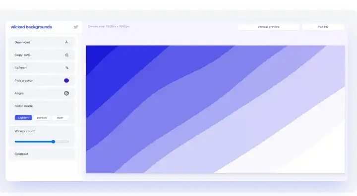 Wicked design for your website to get users attention. Choose your main color, a number of waves, the color mode, download or copy to clipboard. Its easy to use and highly customisable.