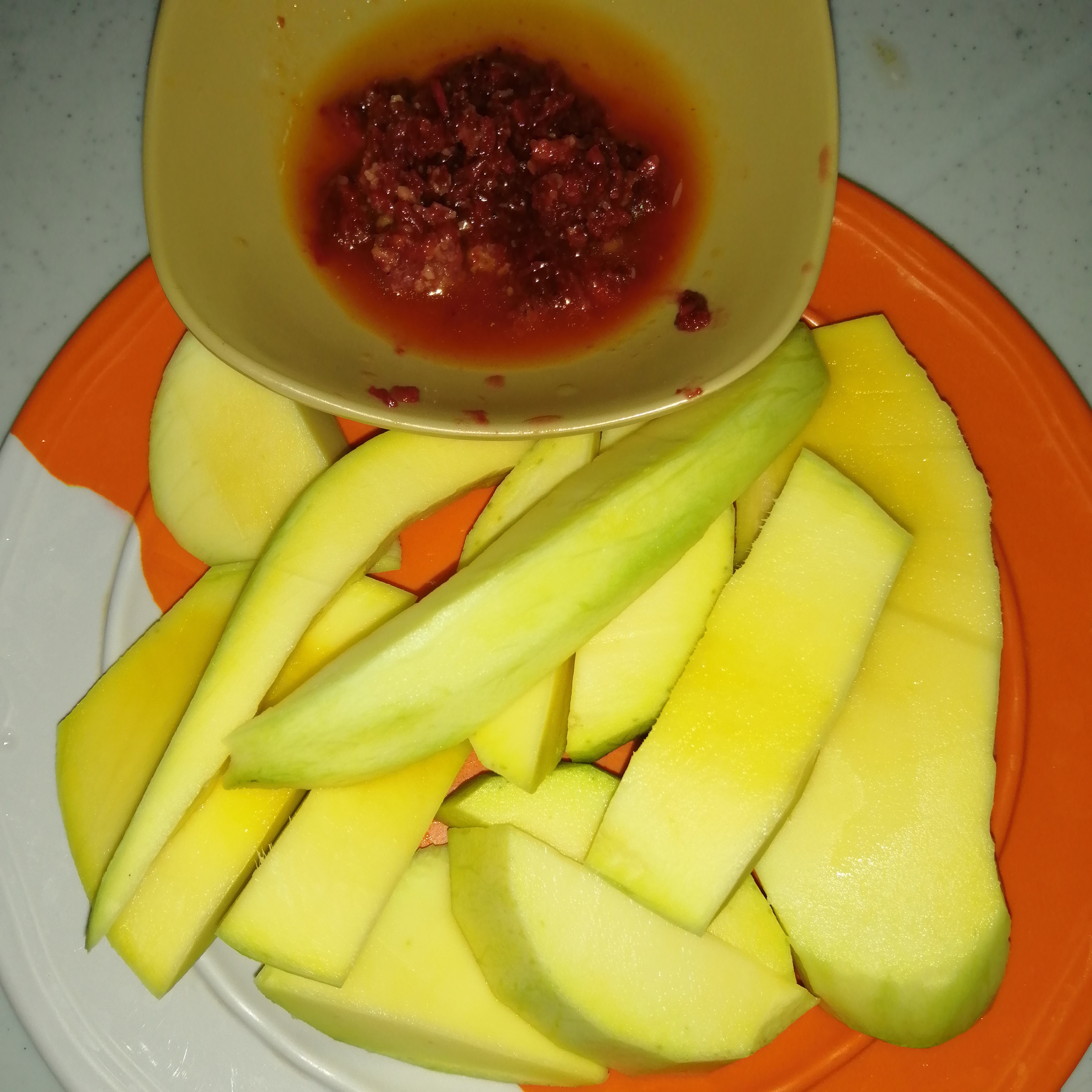 I have been craving for this fruit dipped in shrimp paste since last week. This is so satisfying to eat. My daughters also liked it. They liked the sour and the salty taste that's combined together.
