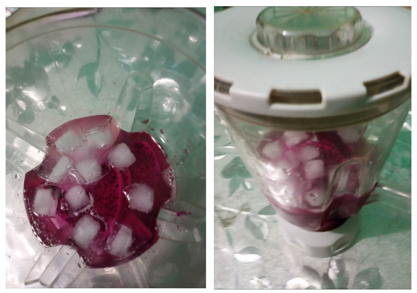 • এরপর জগটা ব্লেন্ডার মেশিনে লাগিয়ে দিলাম। তারপর সবগুলো একসাথে ২/৩ মিনিট ব্লেন্ড করে নিলাম। আর এভাবে আমি ড্রাগন ফলের মজাদার জুস তৈরি করে নিলাম।