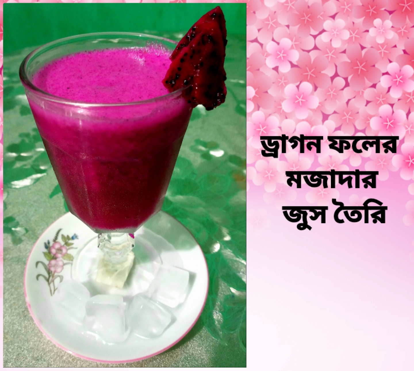 যেকোনো ধরনের ফলের জুস আমাদের এটা শরীরের জন্য খুবই উপকারী।। আর আমি যতদূর জানি ড্রাগন ফল অনেক উপকারী একটা ফল। আপনার জুস তৈরির প্রক্রিয়াটা আমার কাছে বেশ ভালো লেগেছে