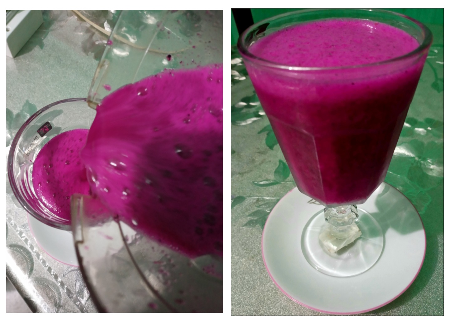 • এরপর আমার তৈরি করার ড্রাগন ফলের জুসটা একটি গ্লাসের ঢেলে নিলাম।