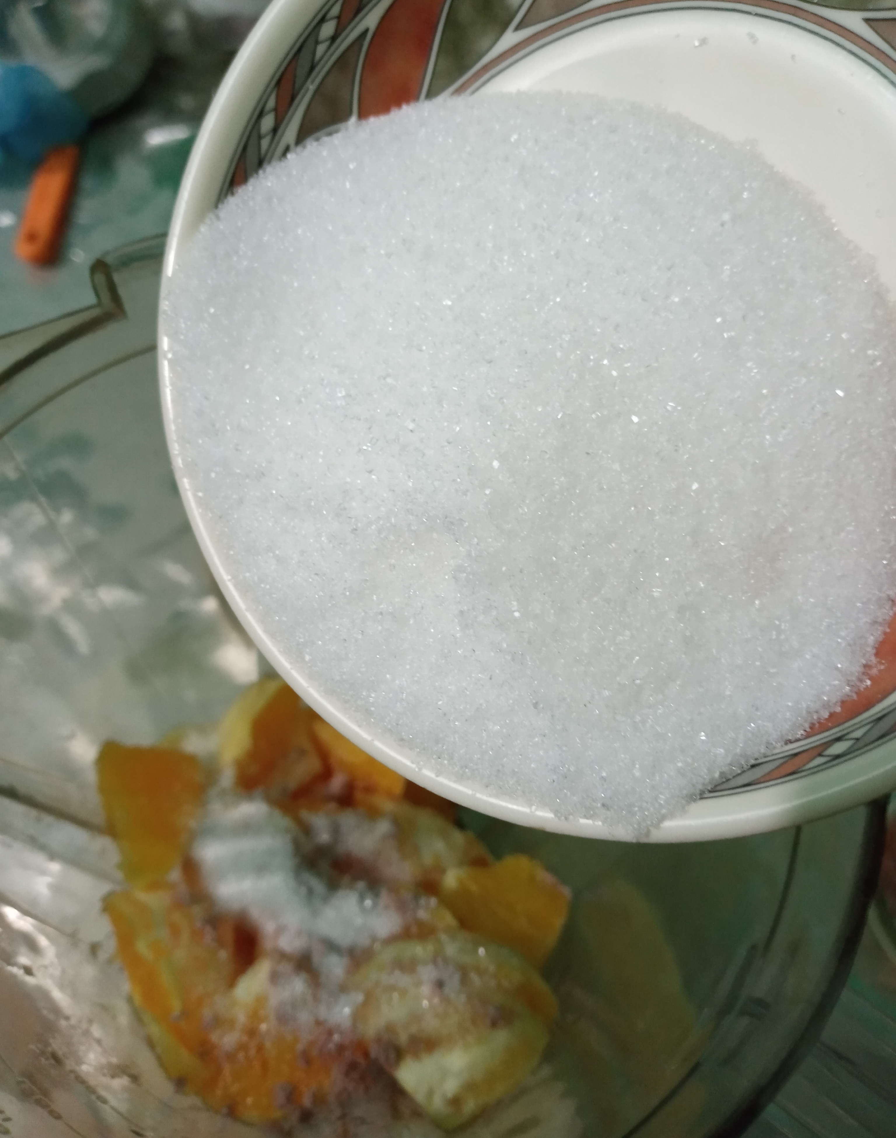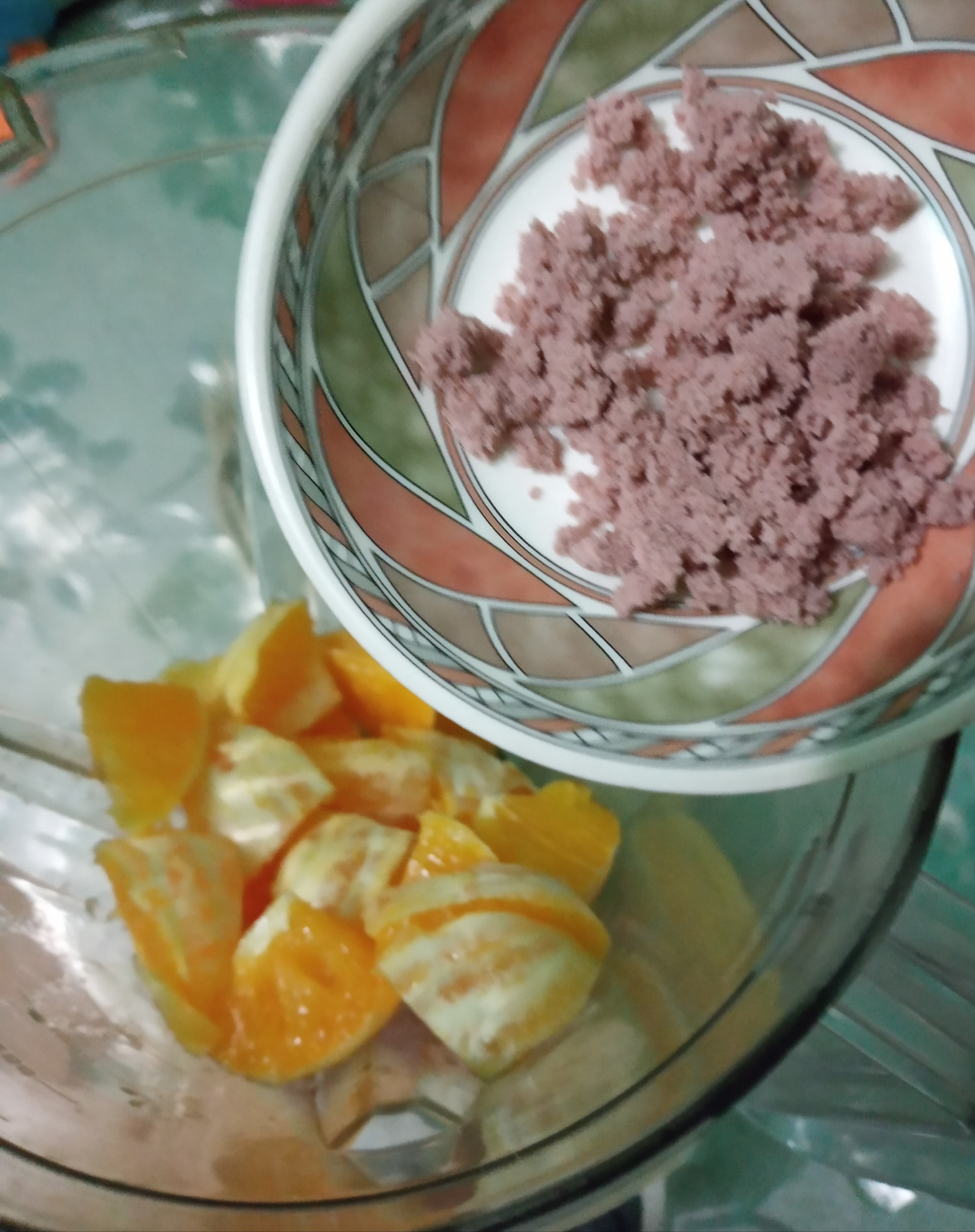 - এরপর মালটা গুলো ছোট ছোট টুকরা করে নিলাম। তারপর ব্লেন্ডার করার জন্য মালটা টুকরা গুলো ব্লেন্ডারের জগে নিয়ে নিলাম।