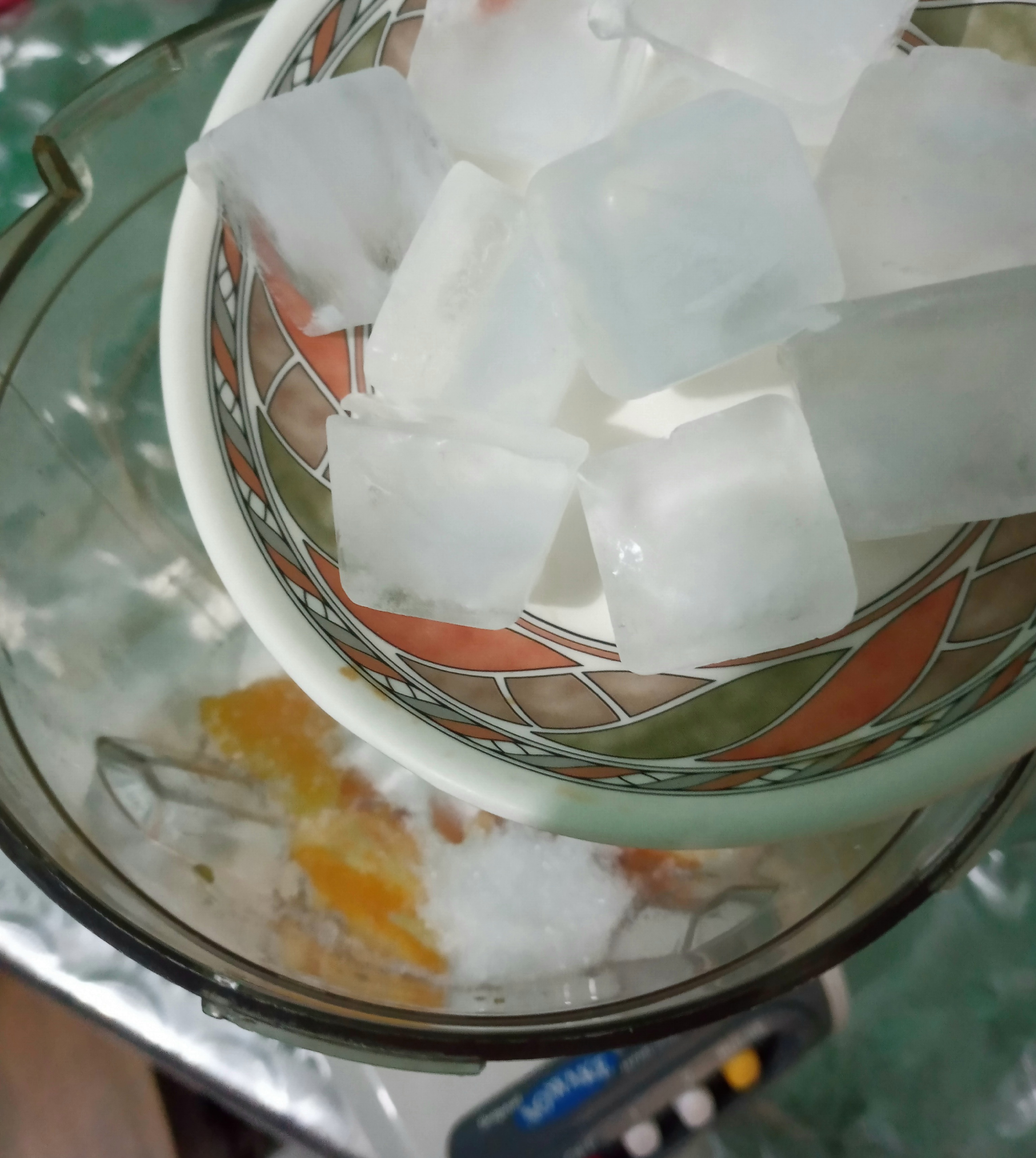 - এরপর বরফের টুকরোগুলো এবং এক গ্লাস ঠান্ডা পানি দিয়ে দিলাম।