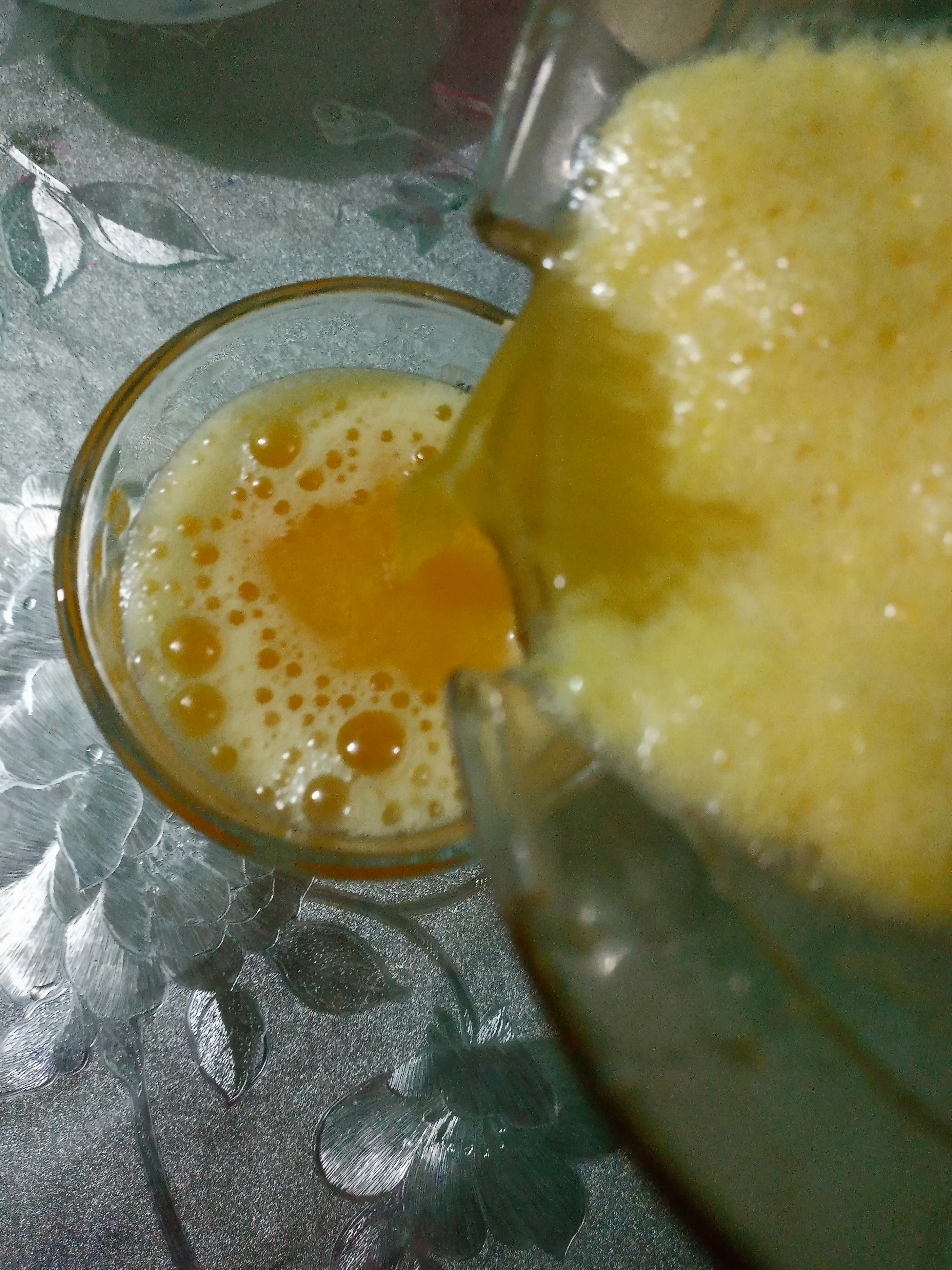 - এরপর গ্লাসের মধ্যে জুসটা ঢেলে নিলাম।