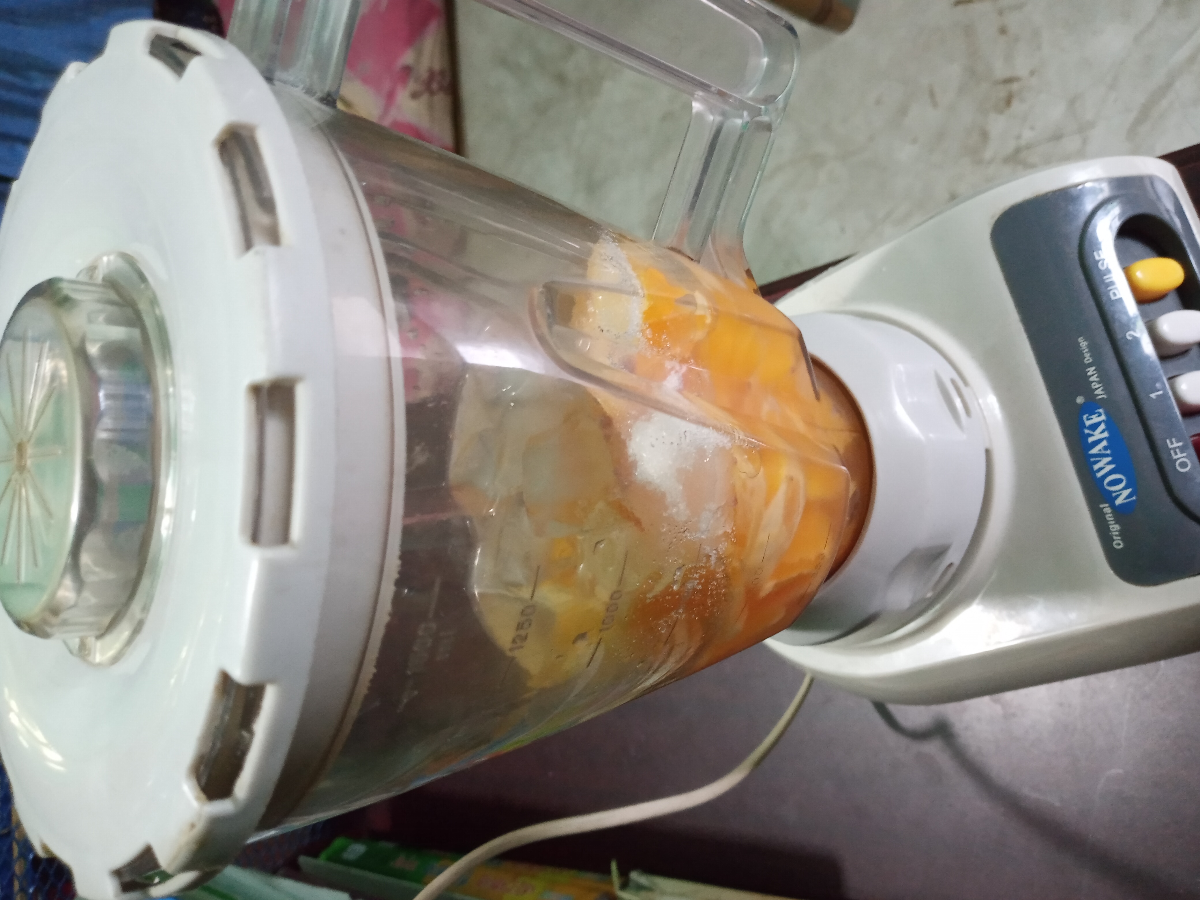 - এরপর জগটা ব্লেন্ডার মেশিনে লাগিয়ে ঢাকনা লাগিয়ে দিলাম। তারপর সবগুলো একসাথে ২/৩ মিনিট ব্লেন্ড করে নিলাম। আর এভাবে মালটার মজাদার জুস তৈরি করে নিলাম।