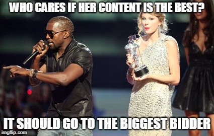"IHey minnow, I'm very happy for you and I'mma let you finish but this whale made one of the biggest bids of all times! Of all times!"