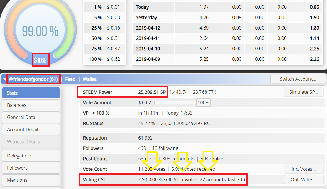 On the rest of the account it was pretty flat as we didn't have anything happen good or bad. So we held 25K SP and managed to pick up a few SP on curation! We did have a small drop on Steem prices this week back to the low $0.40s, but our post votes are holding strong at $0.50 vote per post per steward.