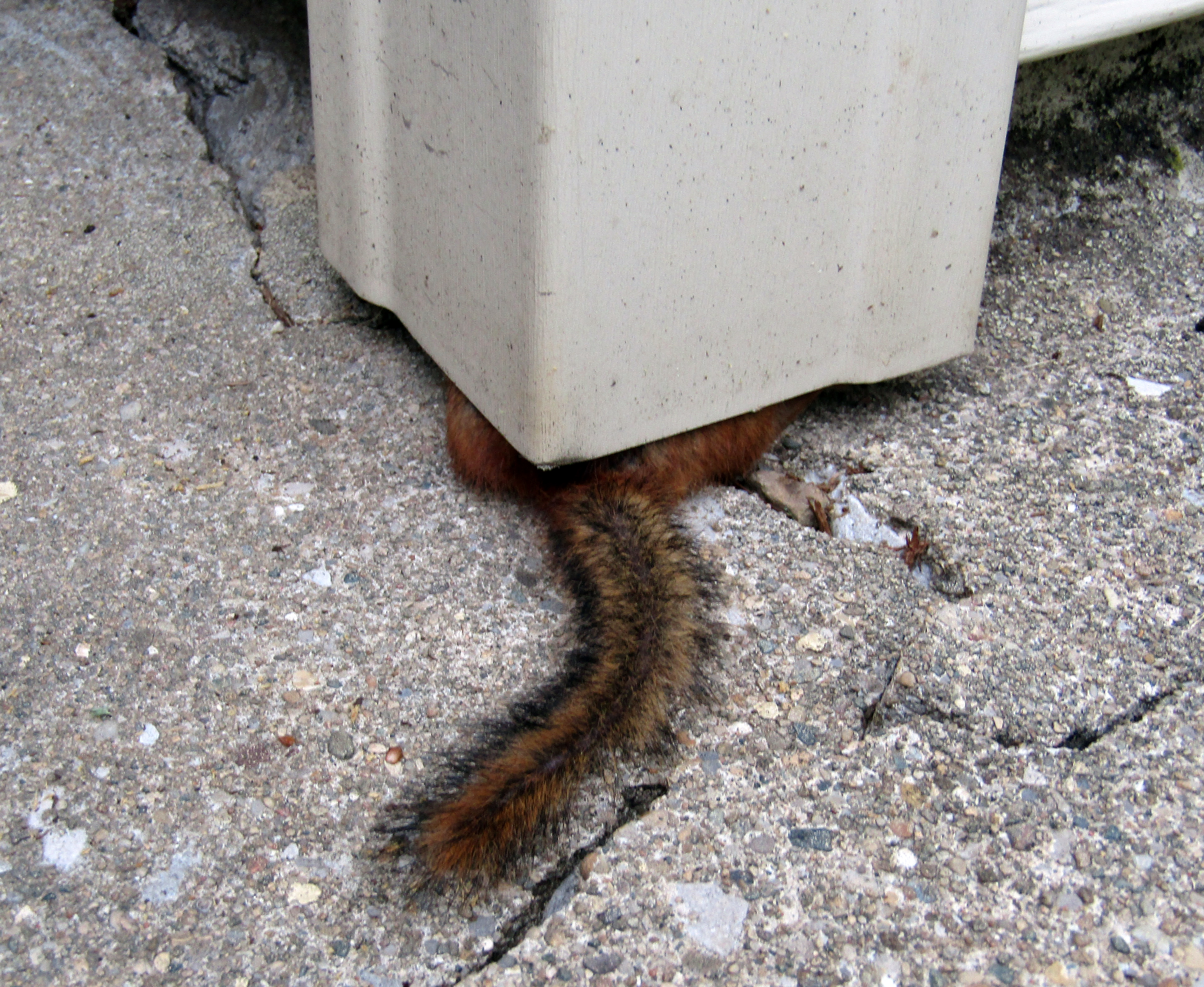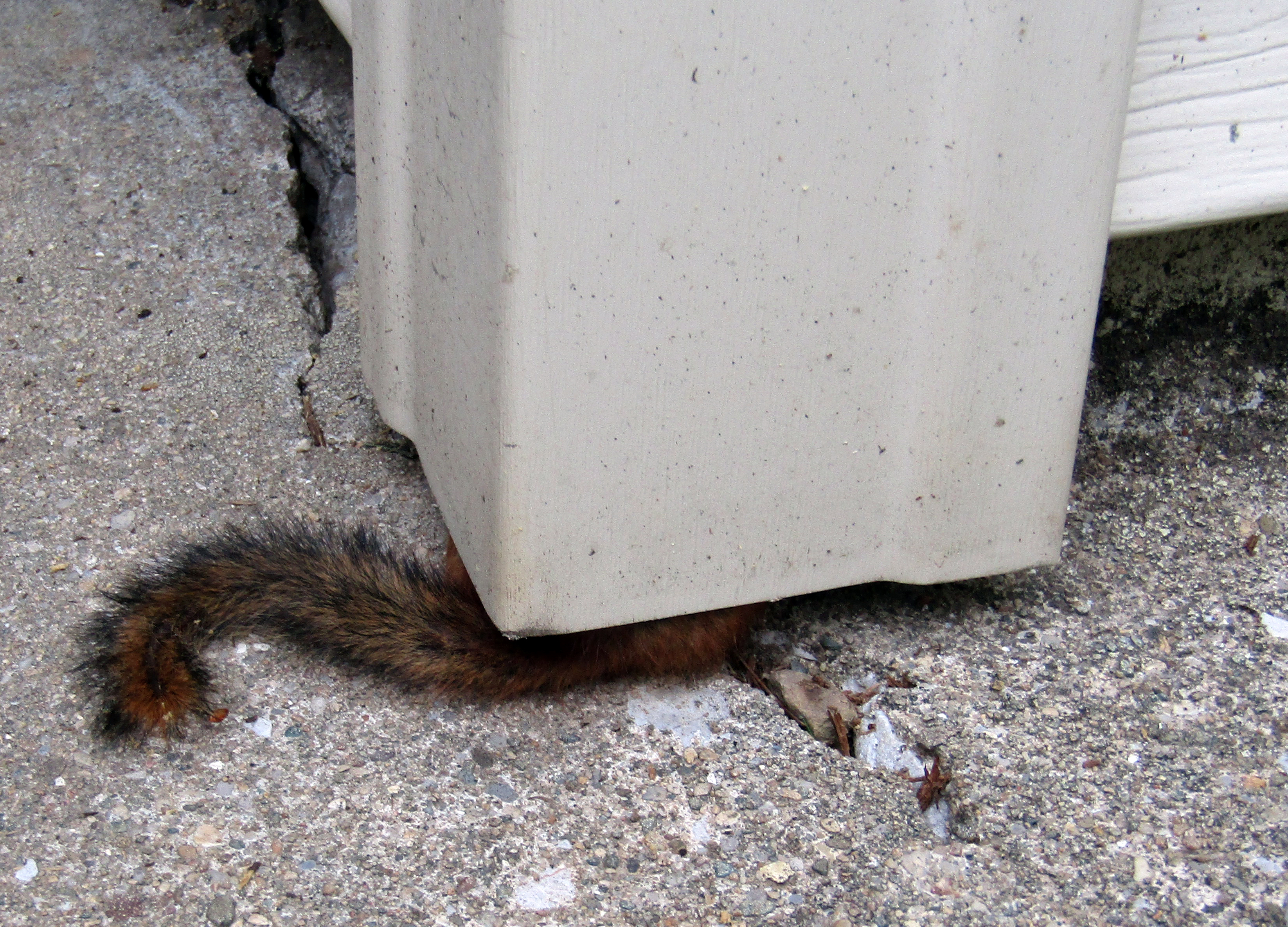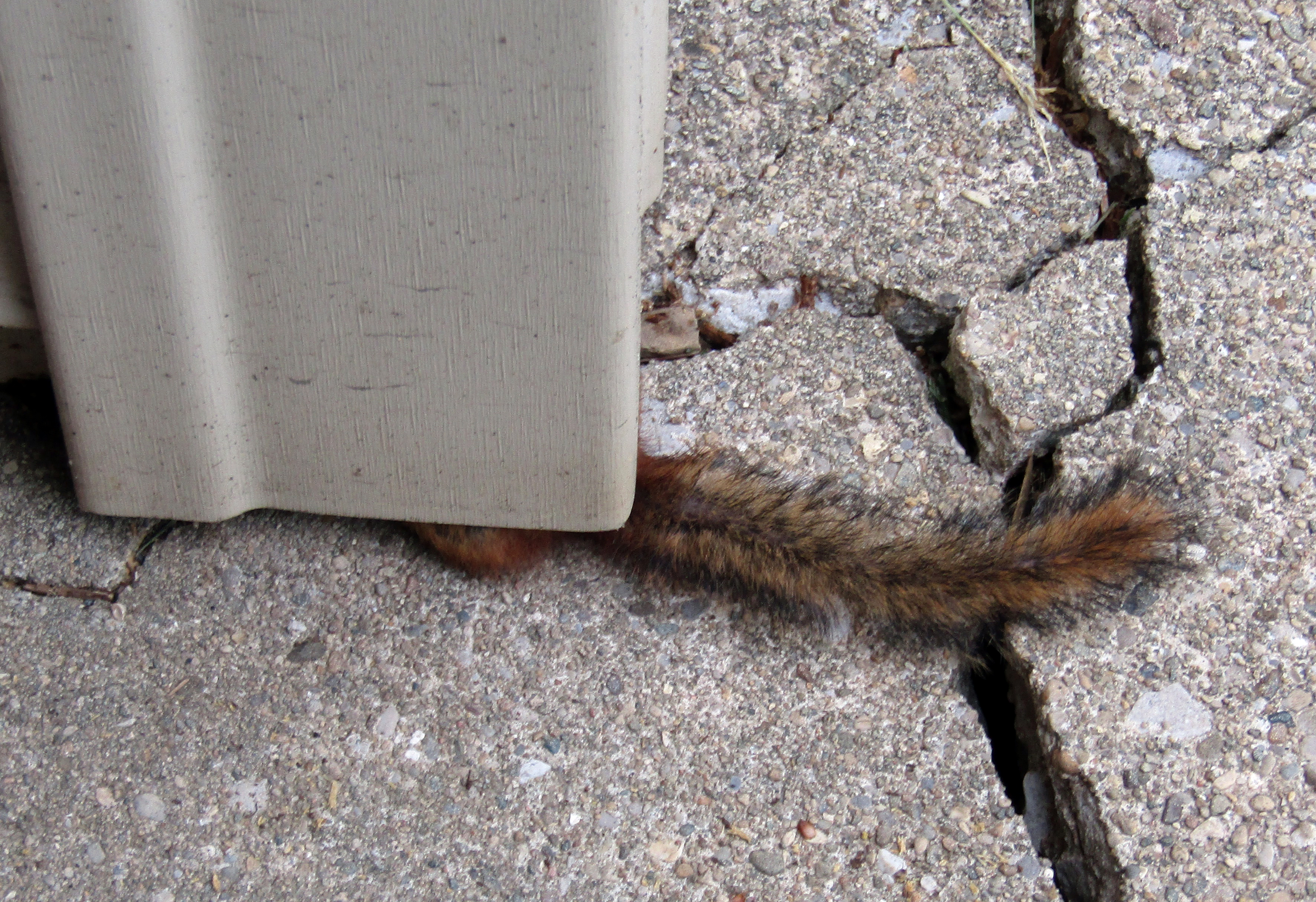 Needless to say, eventually I grazed his tail with a stick and he went "scurrying" into the crack, tail and all.