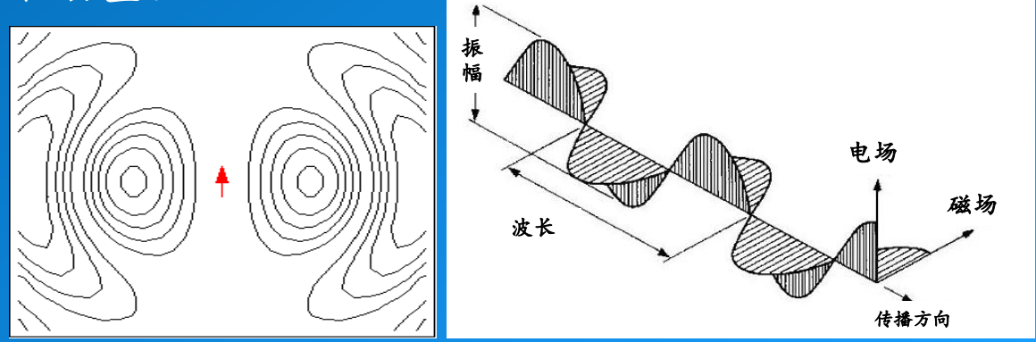 电磁波谱最原始的模型,我们可以追溯到一个基本的电振子结构。在空间传输的电磁波时刻都有电与磁,电场跟磁场始终保持90°。电场叉乘磁场的方向就是电磁波波谱的功率流(坡印廷矢量的传播方向),代表了电磁能量的传输。