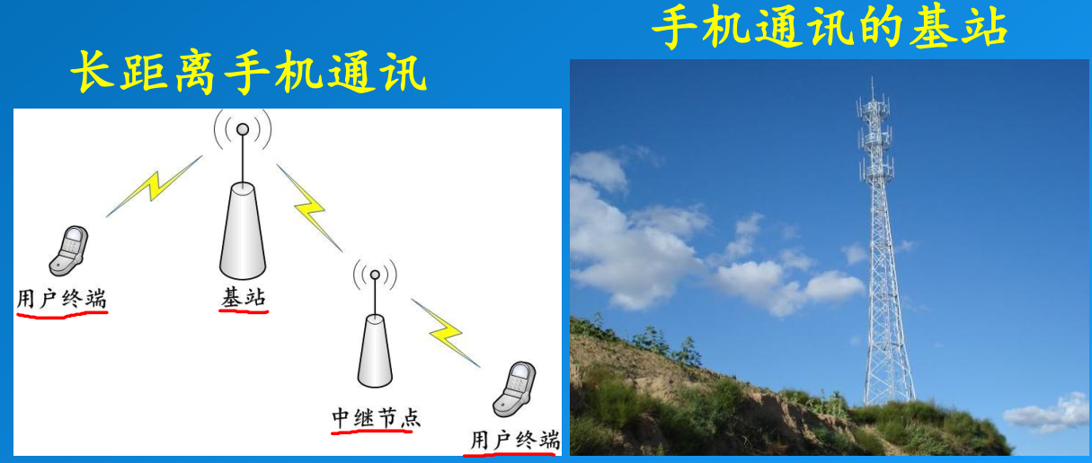 - 为了实现中远距离的稳定通信,就必须建立一个中继站,因为无线信号传输的距离有限,如果没有一个稳定的中继站,它的信号传输也不是那么可靠。我们手机可以实现长距离通信本质上也是通过一系列基站中继完成的。手机通信基站种类很多,这是其中一个例子,在我们架设的高塔上面,可以看到一个天线的阵列,时时刻刻都在接收电磁波信号,利用阵列,这里有四个小柱子或者说六个小柱子甚至更多,圆形的阵列,放着三层。就可以完成我们的无线电的中继通信,中继站的类型很多,包括中继站的天线类型也非常多。