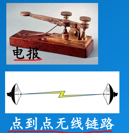 - 电话机发展也非常迅速。最早的电话机,很古老的,很大的一个设备。现在来说也有用到点对点的无线通信是用的非常广泛的。这个链路不单指的是由我们现在寻常的运营商可以建立这种点对点的通信。同时现在还经常有这个网络,按照特殊需求,应急预案,自己进行组织建立网络。自组织网络,完成应急通信。