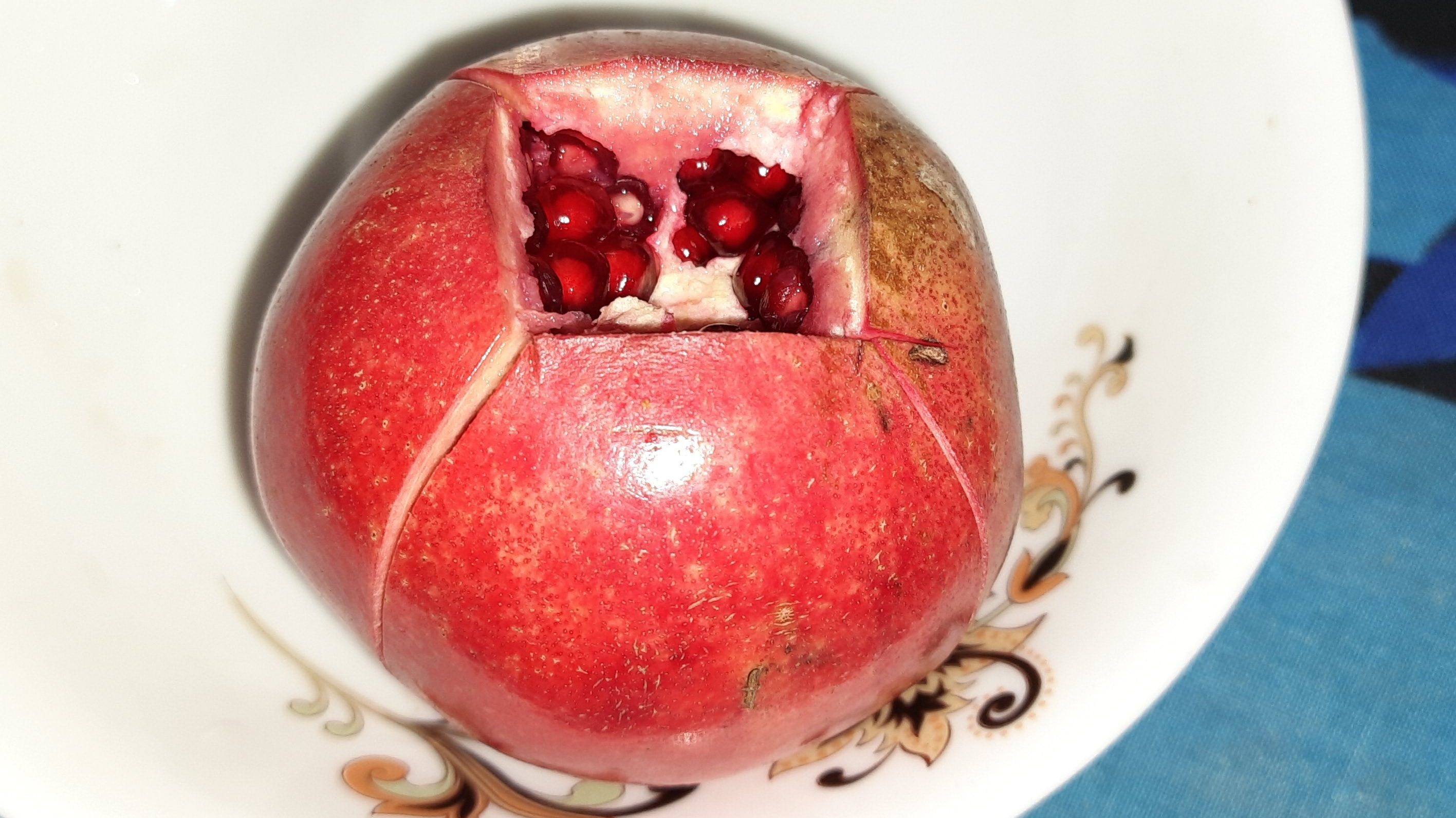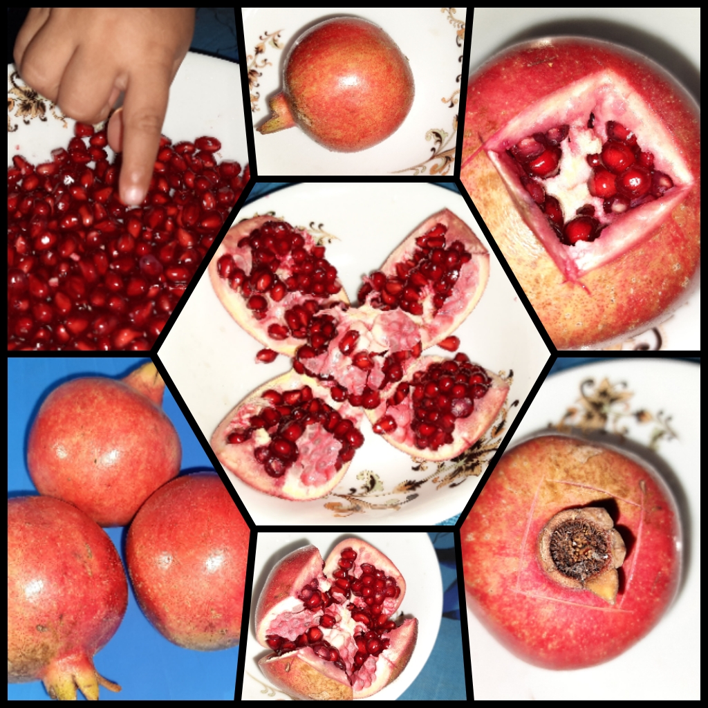 তারপর সেটাকে হাত দিয়ে চার অংশকে চারদিকে টেনে নিবেন, এবং ওইটা থেকে ধীরে ধীরে সবগুলো আনার নিয়ে নেবেন একটা পাত্রে। যেমনটি আমার ফটোতে দেখা যাচ্ছে।