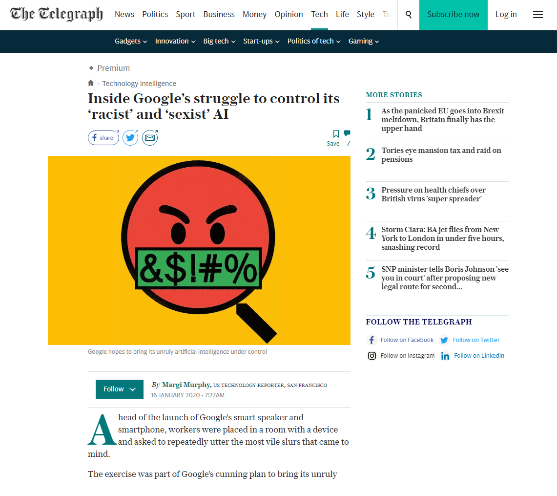 The exercise was part of Google's cunning plan to bring its unruly artificial intelligence under control. Homophobia, racism and sexism were actively encouraged.