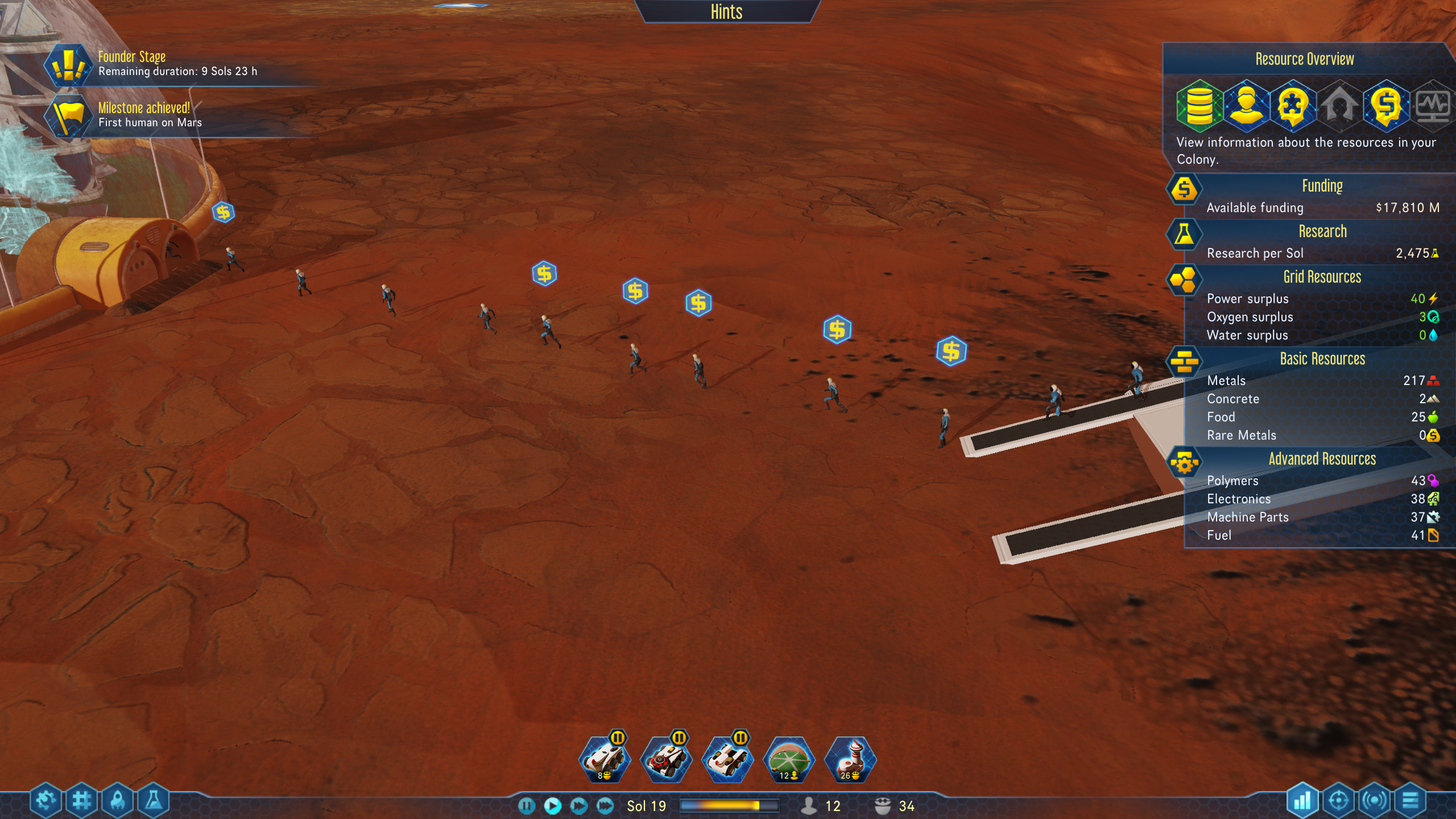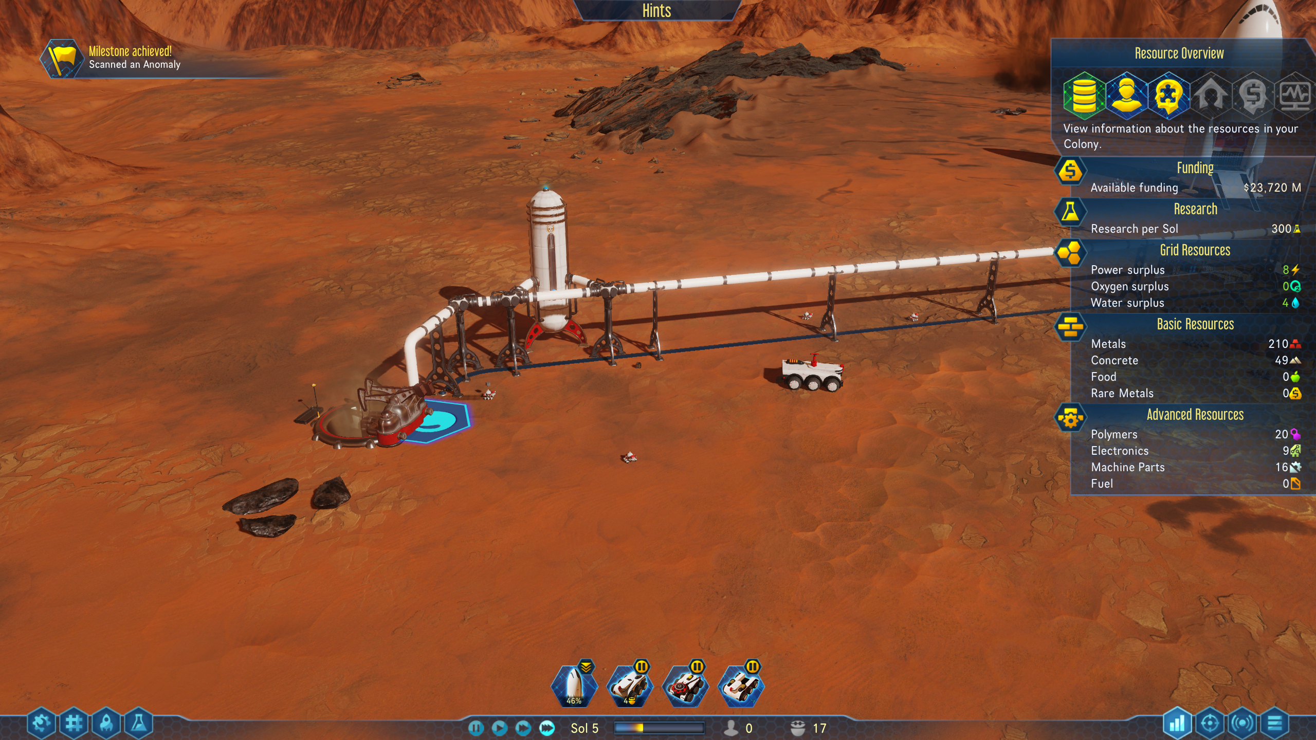 Dotted around the Martian landscape you can find surface metals. Your drones will gather the resource, or you can order your transport to grab them.