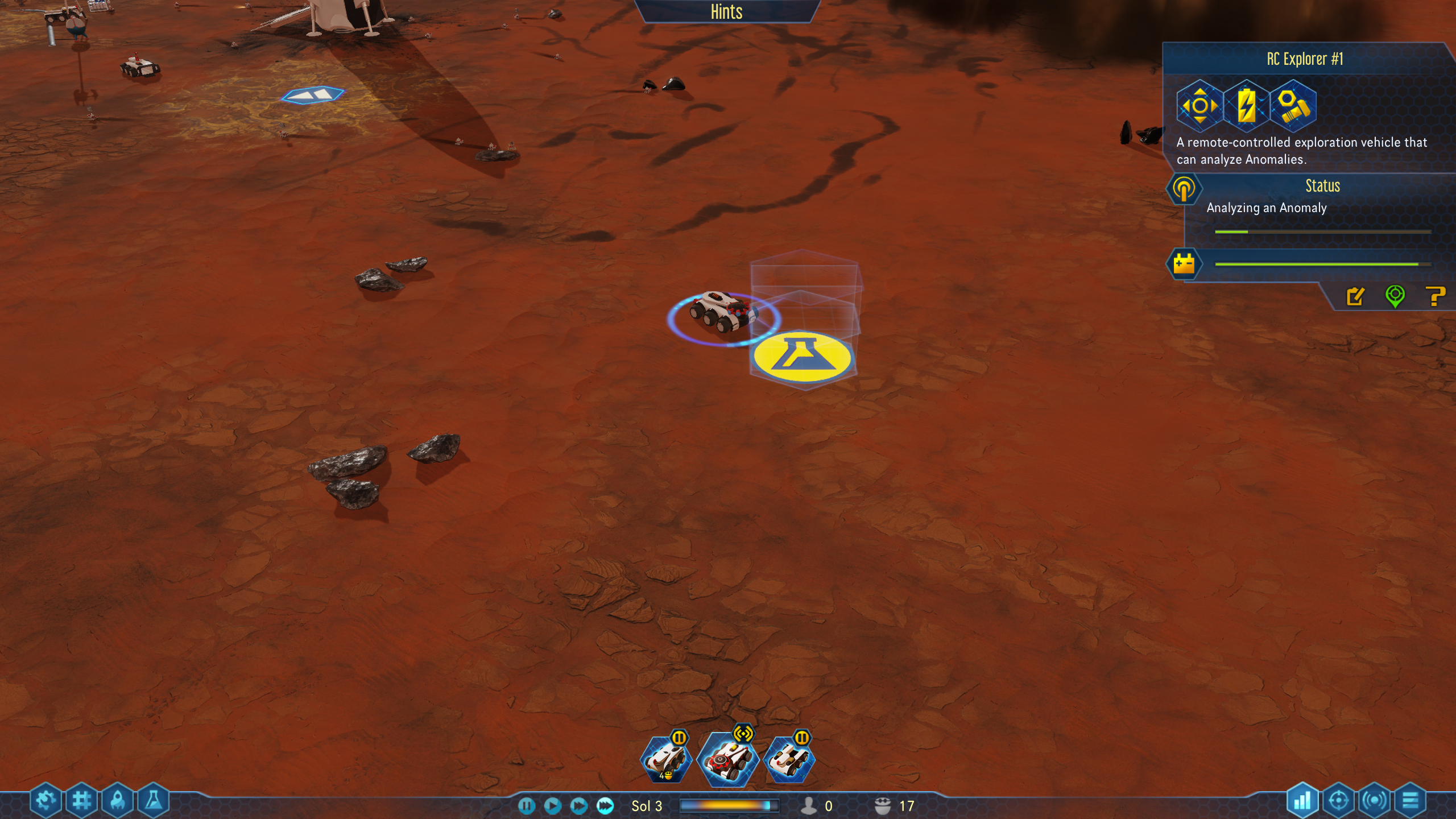 As you scan sectors, different resources are revealed along with anomalies. You send your RC explorer to analyse them. This one is a research anomaly which generates research points to spend on your current research or technology.