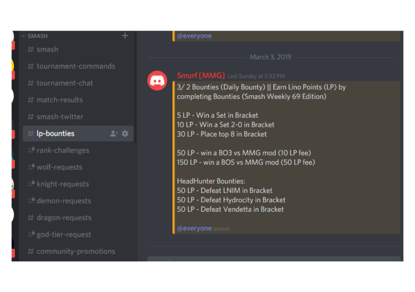 Most Bounties take place on stream(LP Arenas), with the winner being recorded for a reward by MMG admins. For Bounties that take place off stream, please submit your results to an MMG Admin in the form of video evidence(images accepted case-by-case). For Bounties in bracket, MMG admins will simply use a player’s reported results.Example of Bounties: