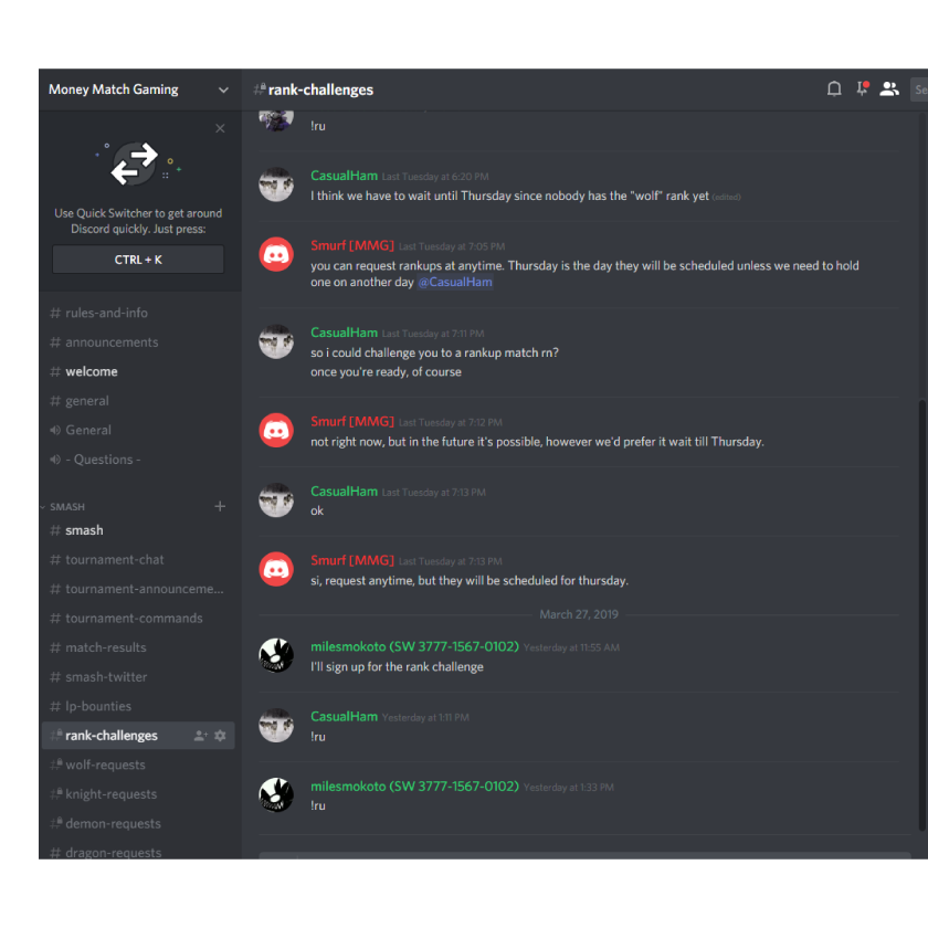 For the first event (tonight)everyone will be starting off as LP Brawlers(which are players in MMG's Discord server that also follow @moneymatchgaming on Dlive.tv/moneymatchgaming), due to everyone being in the same tier initially(LP Brawlers), we will have inner-tier battles, which will count as Rank up Challenges(RUC). These initial inner-tier battles (those that are meant to take the place of a Rank up Challenge) will cost the same as a Rank Up Challenge. We will continue to hold Rank Up matches in this format (over weeks) until all tiers are filled.