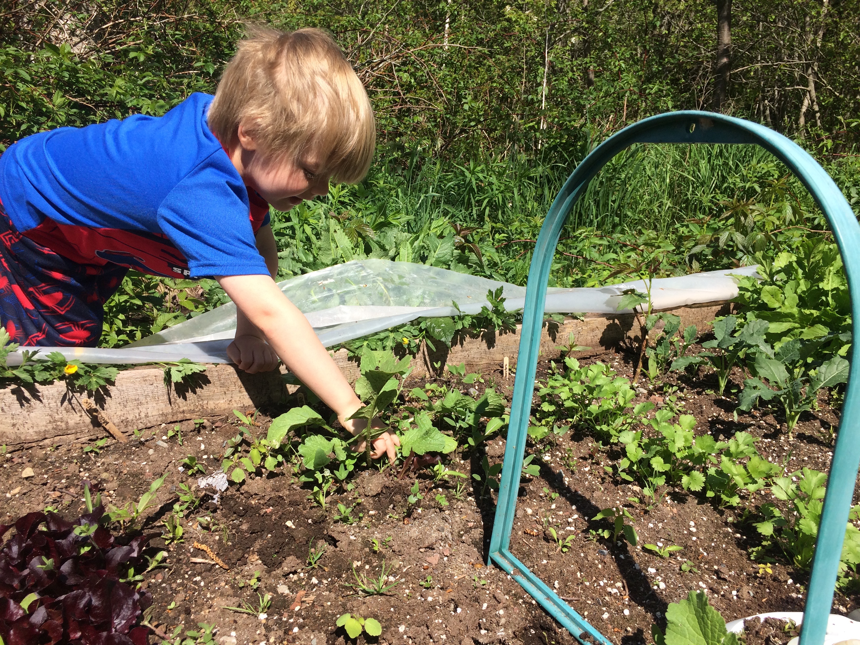 I let my garden go to waste this season, but one of my motivations in the past was this glorious moment with my 4 year old that you've pictured here with yours. I did have him pick things in the garden throughout the winter, but picking greens is less exciting than spring crops. Need to get back at it.