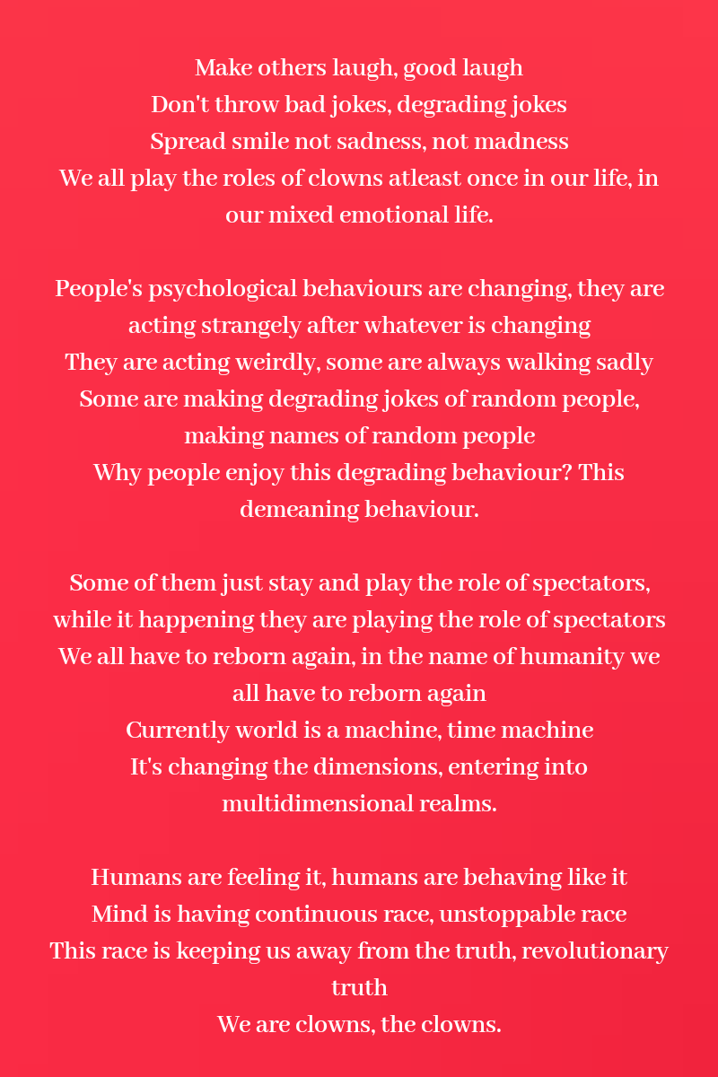 We all play the roles of clowns atleast once in our life, in our mixed emotional life.