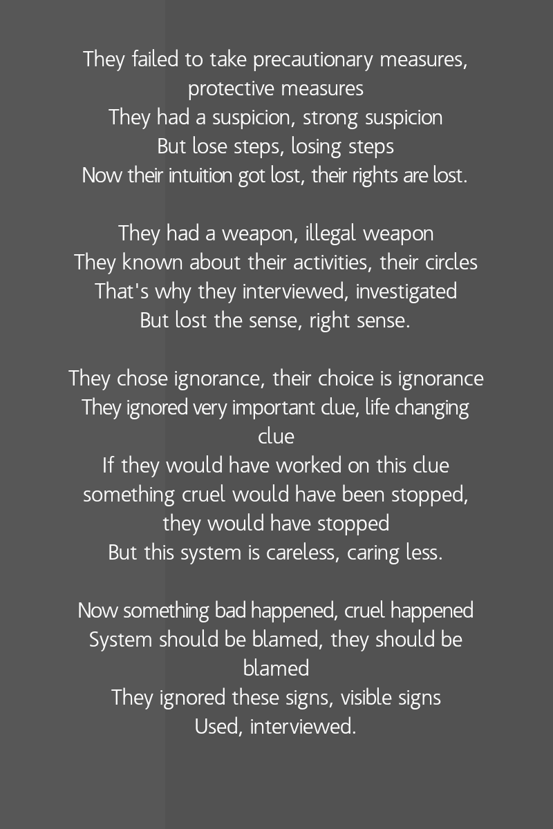 If they would have worked on this clue something cruel would have been stopped, they would have stopped
