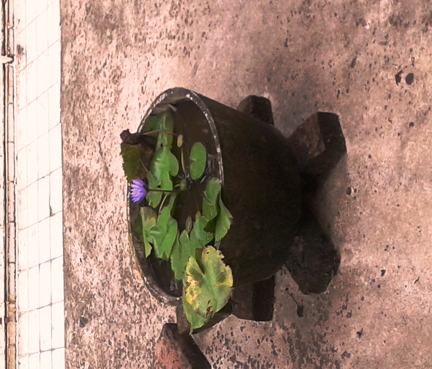 This is a water lily flower. These flowers are floating on the water everywhere. One day at my college I saw this water lily floating in a pot on the ground floor of the college while walking around the campus in my spare time.