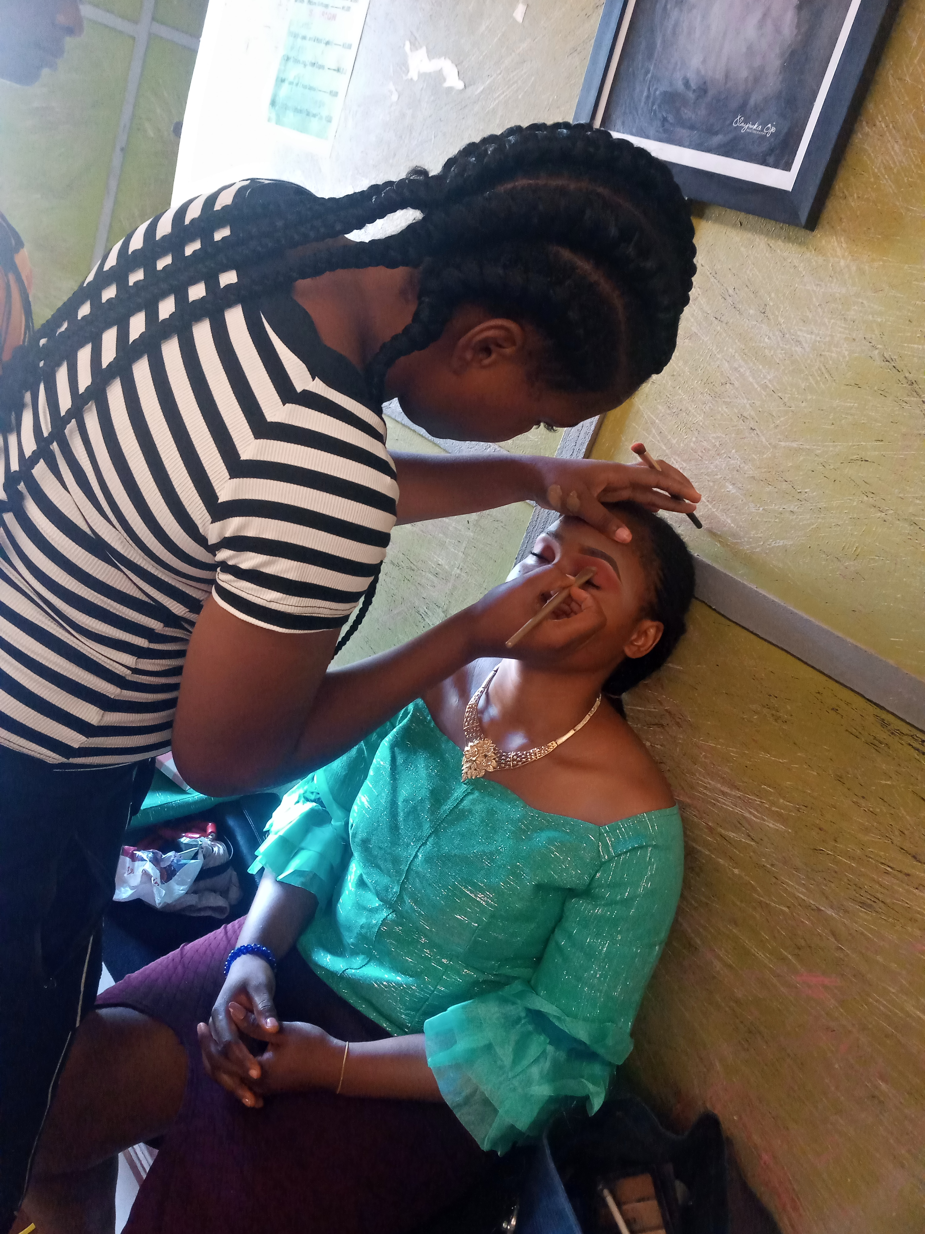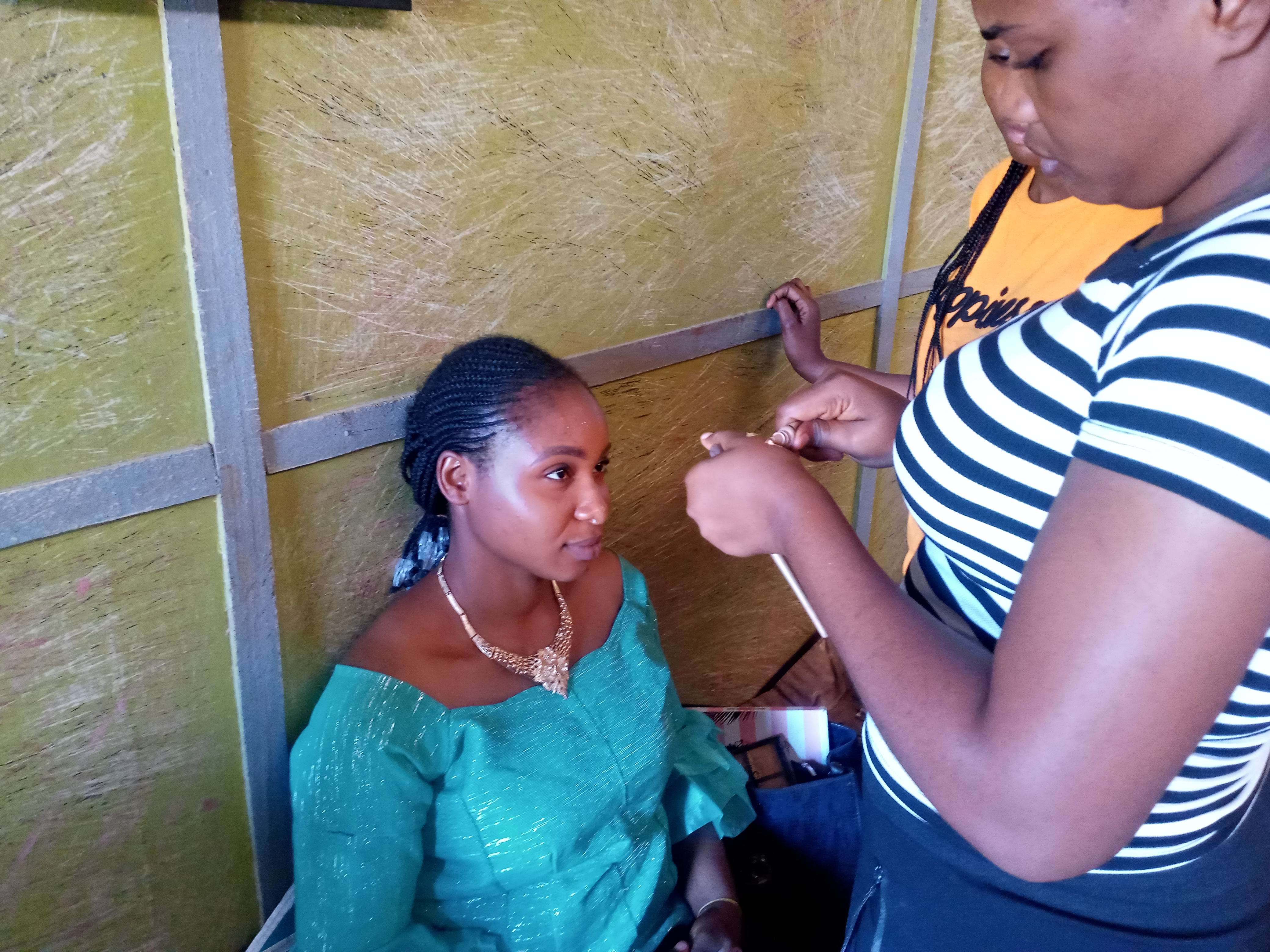For every face makeup you want to do as a makeup artiste, you are expected to tell your client to dress up before making up for them. This is because, the makeup must match the cloth and secondly, so that it won't wipe the makeup if they previously haven't wear it.
