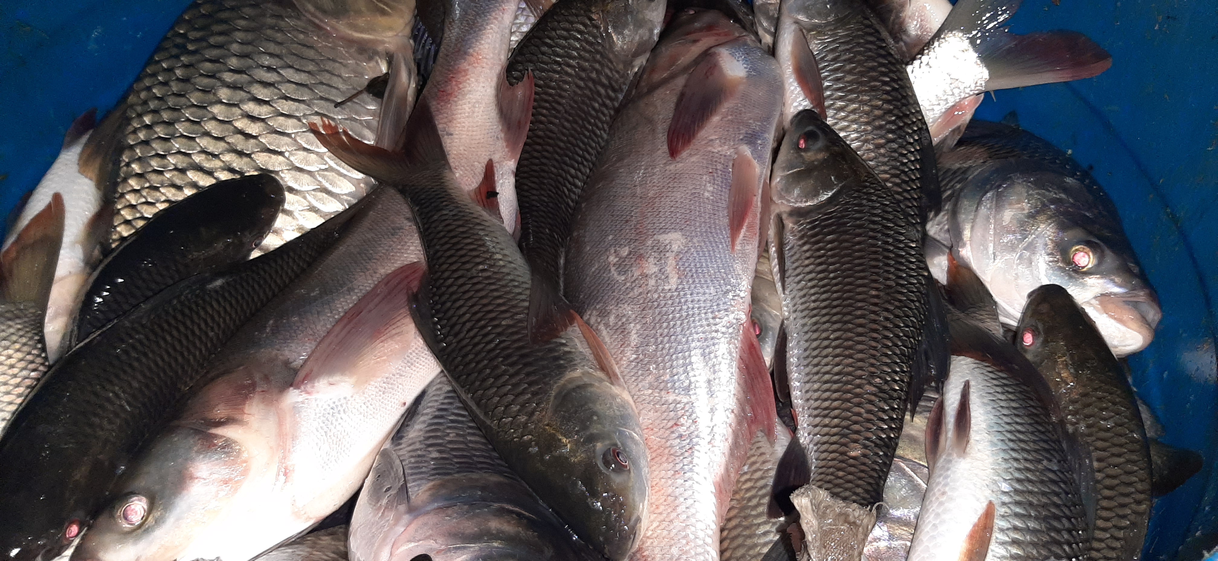 We did catch many fishes from our pond and sell them to the distribution company. Few of them we cooked and had at our lunch, delicious!!!